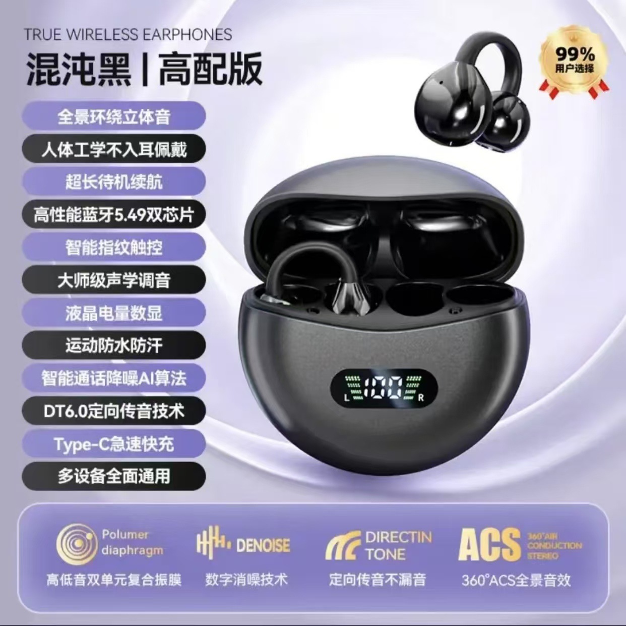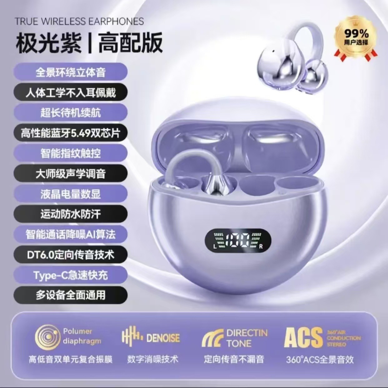 • 오로라 퍼플-하이 에디션 [블루투스 5.49 듀얼 칩 ◆ 스테레오 파노라마 서라운드 사운드 ◆ DT7.0 지향성 사운드 전송 ◆ 스마트 통화 소음 감소 ◆ 음성 지문 이중 제어]