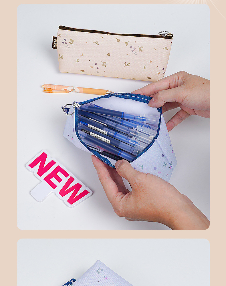 연필 가방 작은 괴물 간단한 삼각형 대용량 옥스포드 천 휴대용 학생 지퍼 문구 가방 단일 레이어 연필 가방스토어 가기