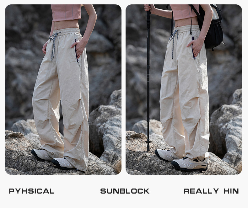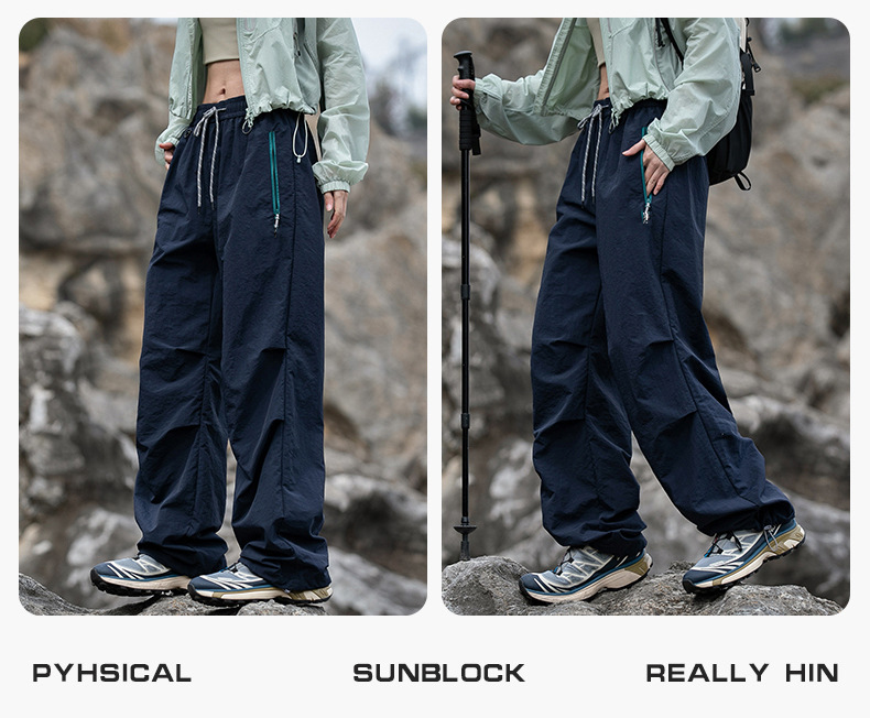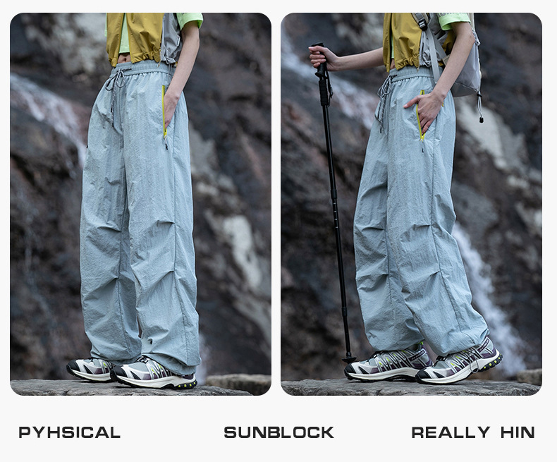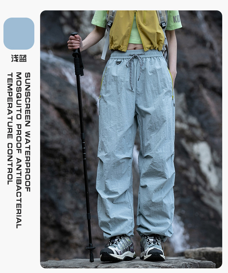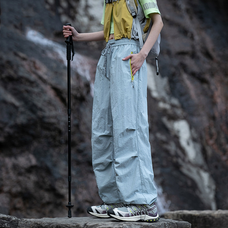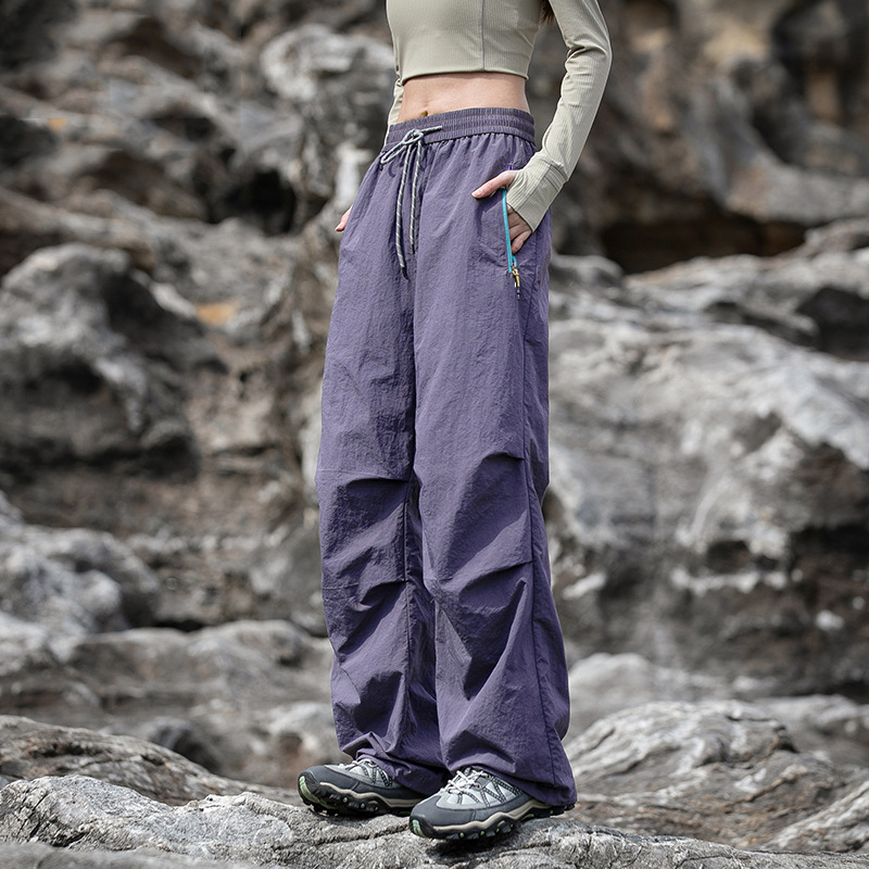유명 브랜드 여성용 보라색 아웃도어 바지, 여름 등산, 하이킹, 암벽등반, 자외선 차단, 속건, 낙하산 운동, 봄, 가을 작업복 바지스토어 가기
