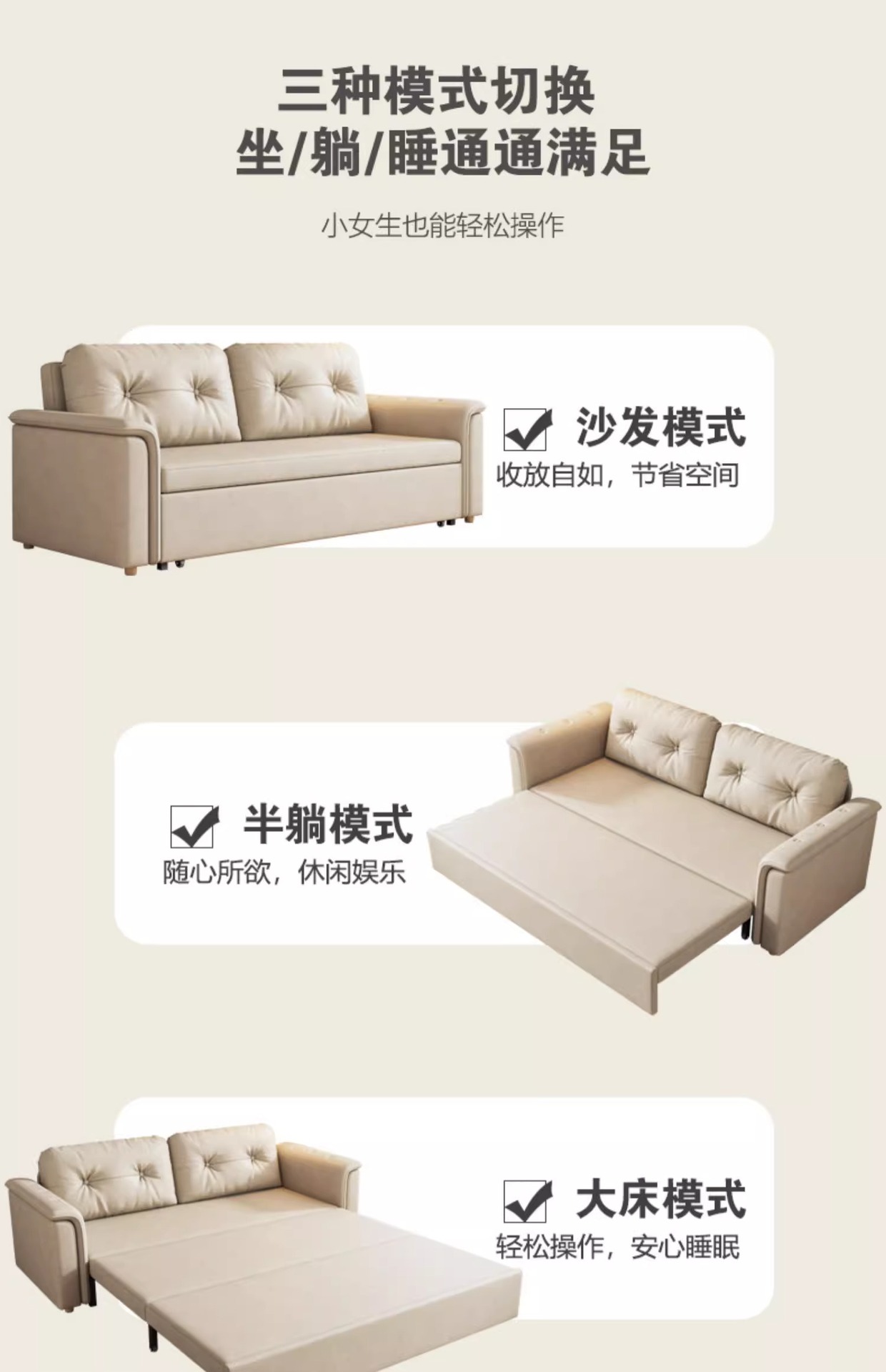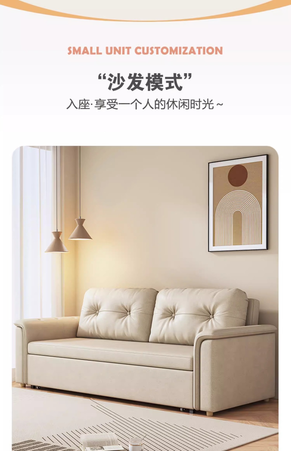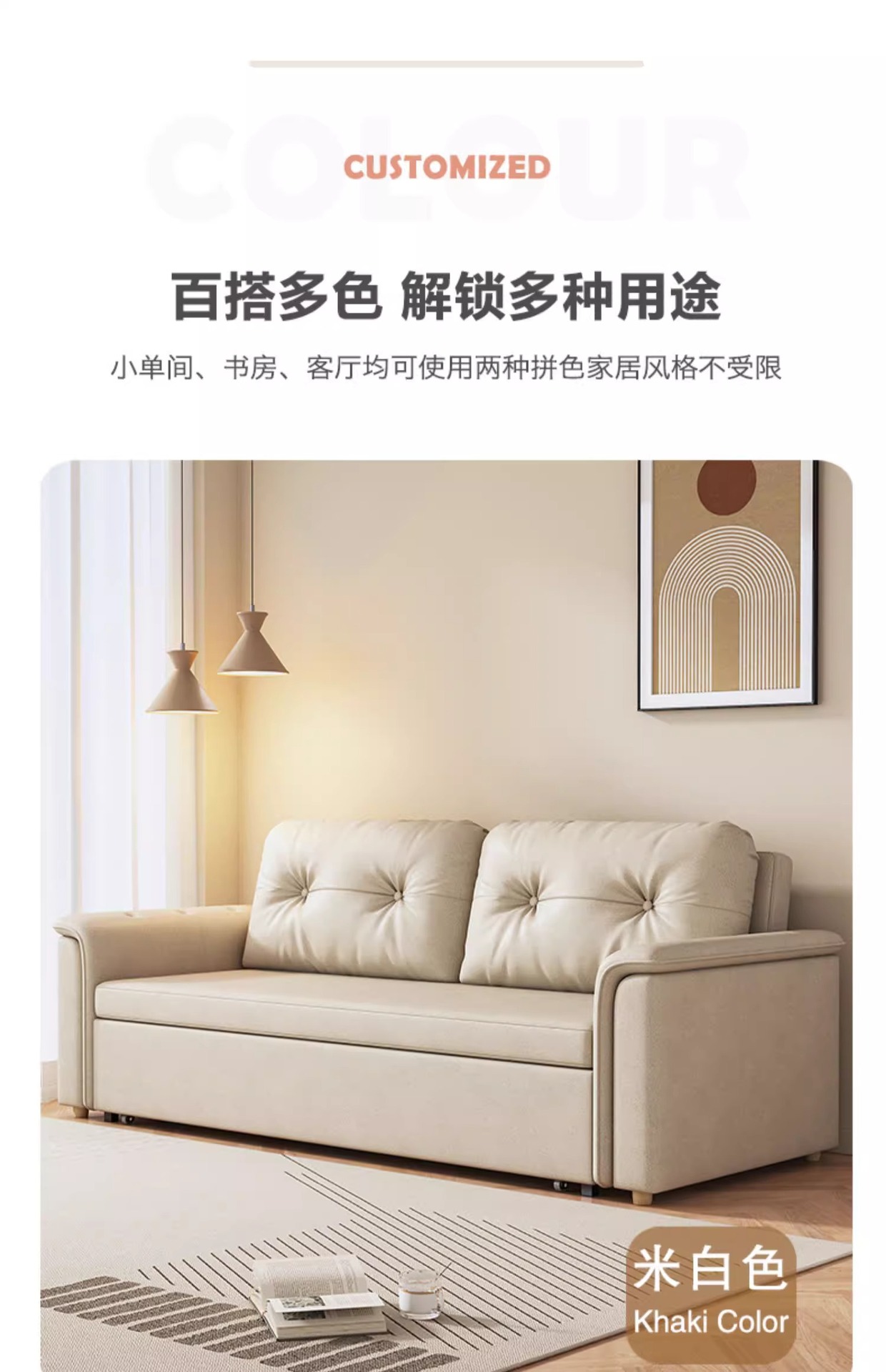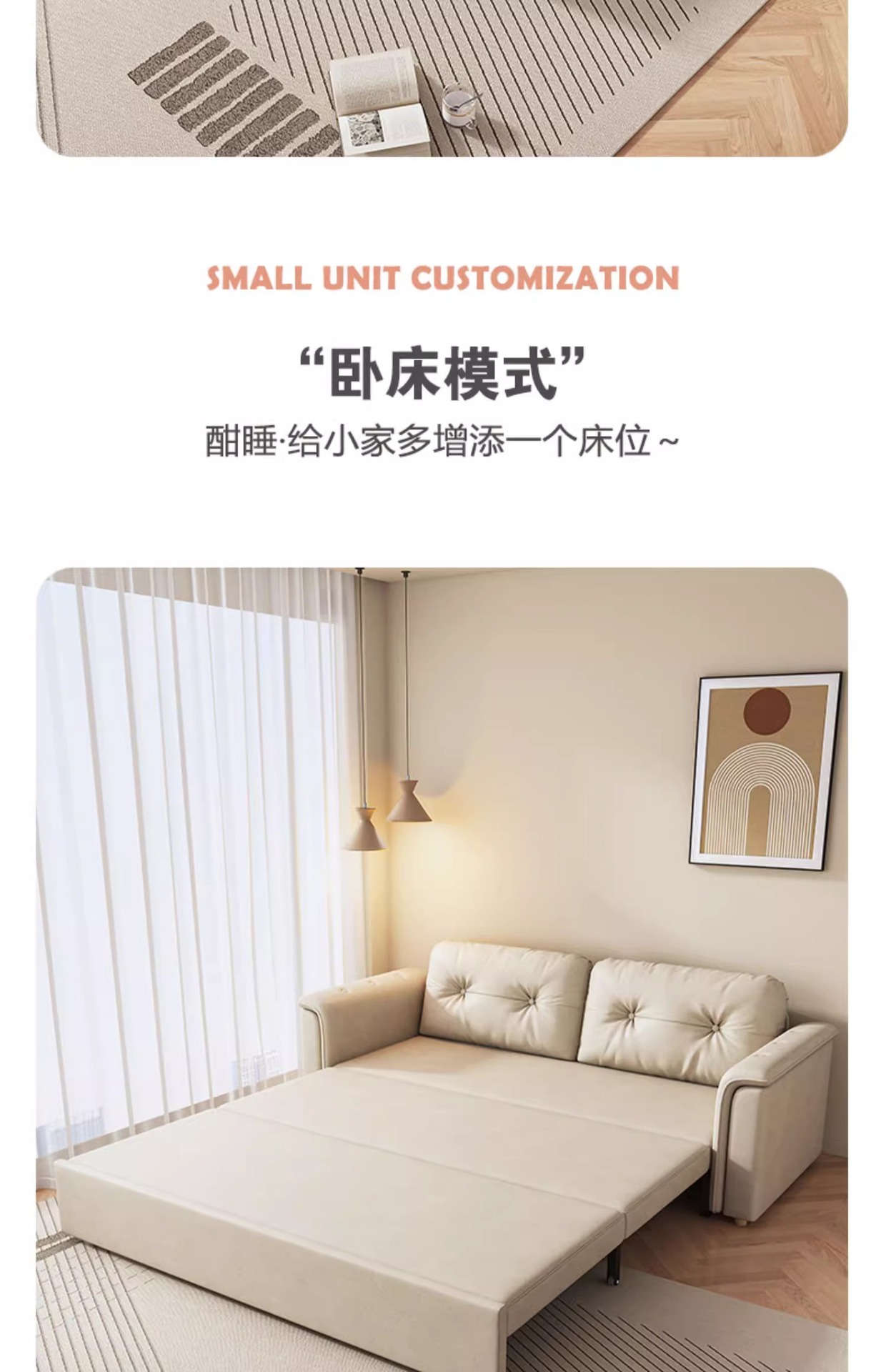 2025 새로운 크림 스타일 접이식 팔걸이없는 소파 침대 이중 목적 작은 아파트 거실 다기능 풀 아웃 침대스토어 가기