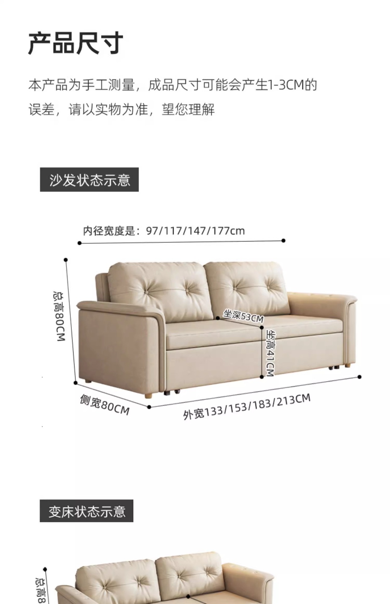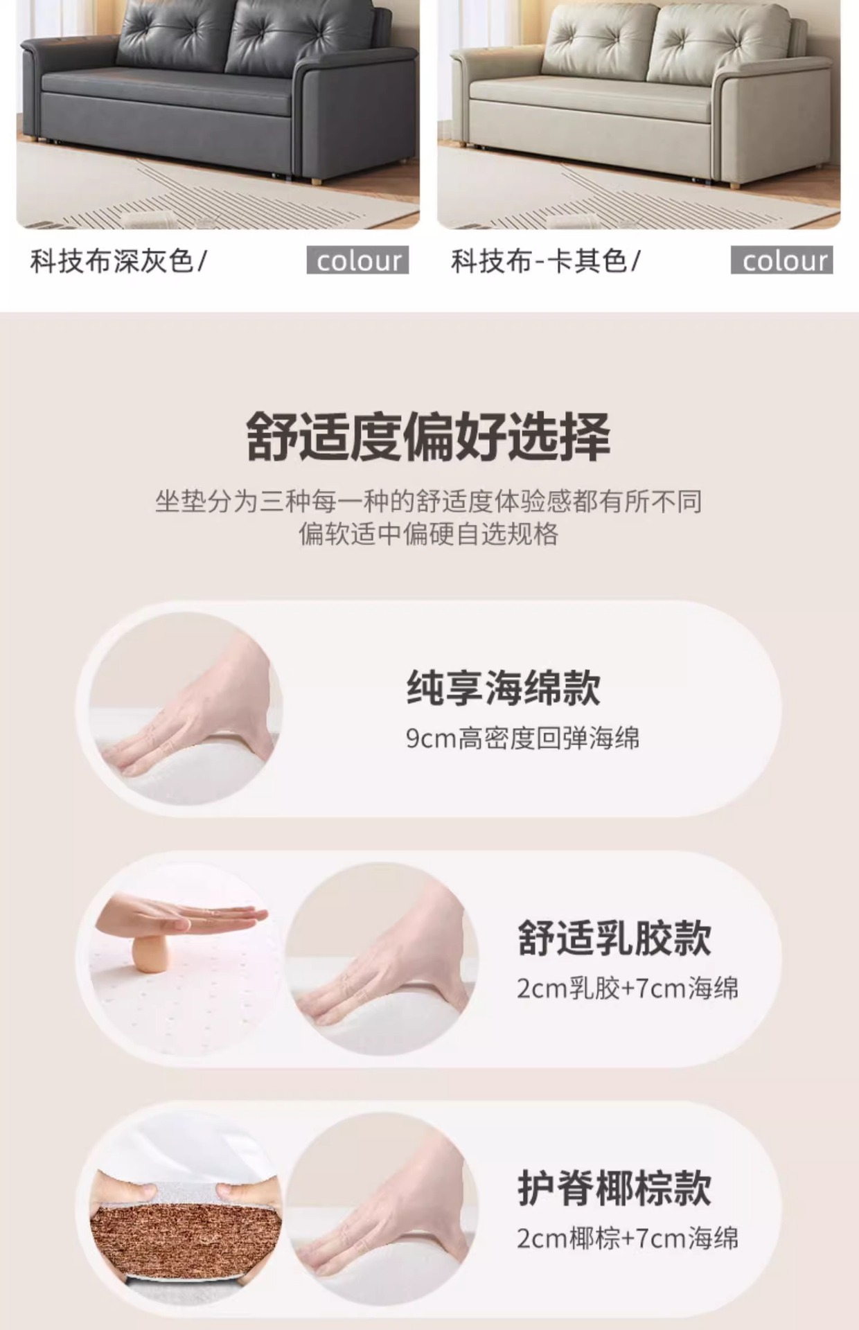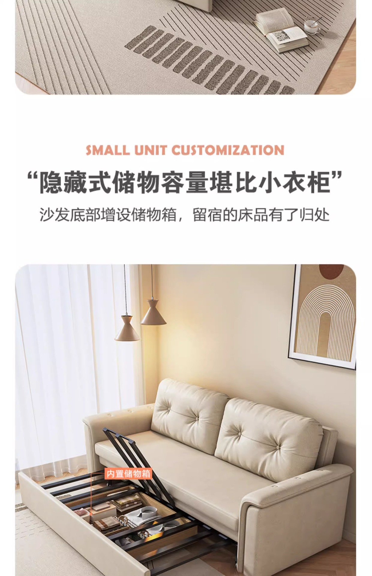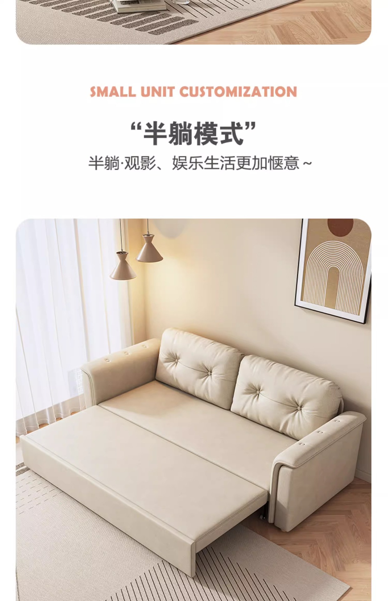 2025 새로운 크림 스타일 접이식 팔걸이없는 소파 침대 이중 목적 작은 아파트 거실 다기능 풀 아웃 침대스토어 가기