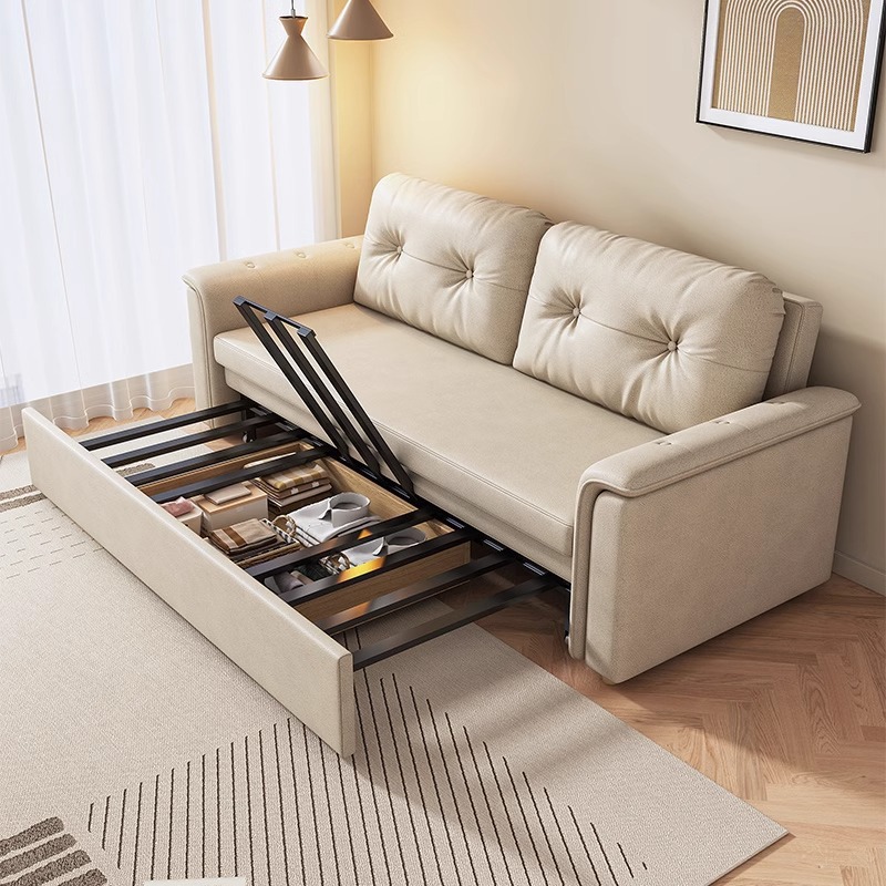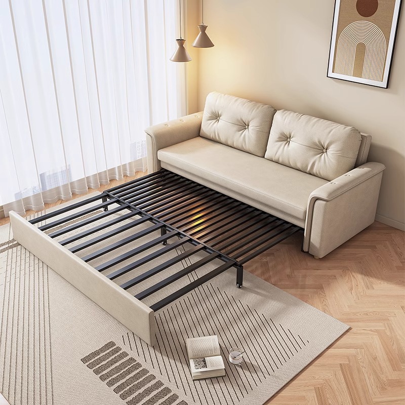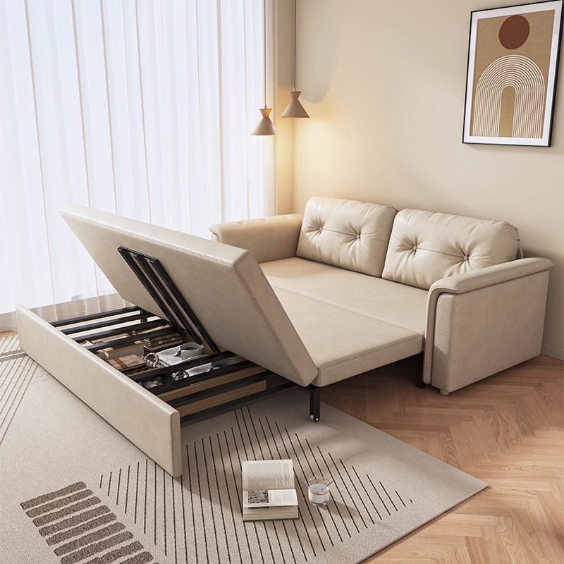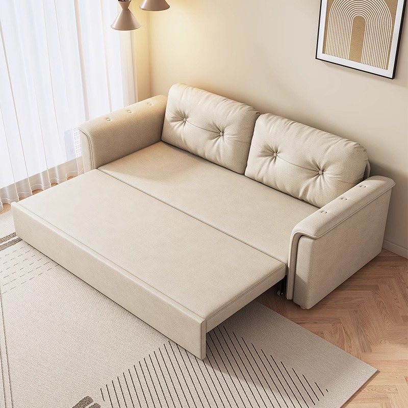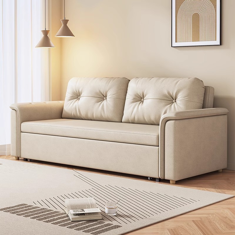 2025 새로운 크림 스타일 접이식 팔걸이없는 소파 침대 이중 목적 작은 아파트 거실 다기능 풀 아웃 침대