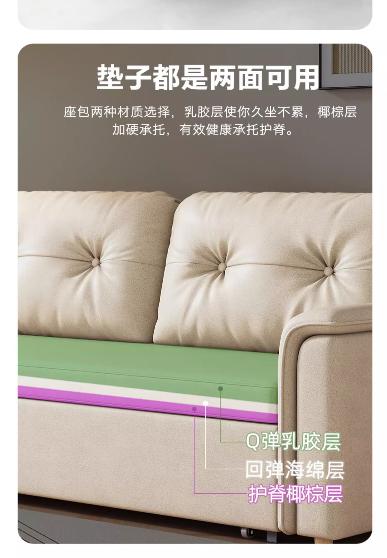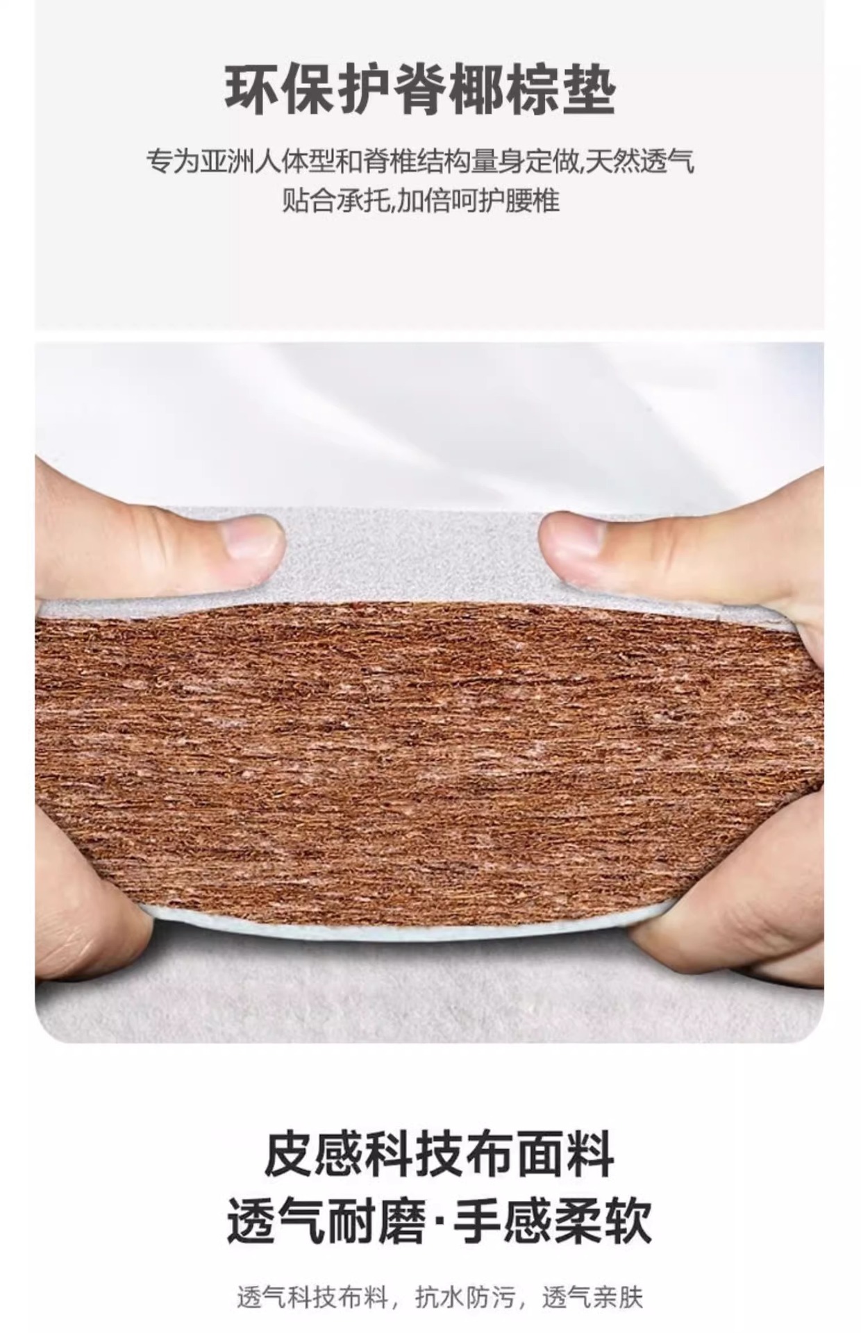 • 1.5m 넓은 천연 코코넛 섬유 + 스펀지 양면 사용 가능 (수납함 없음)