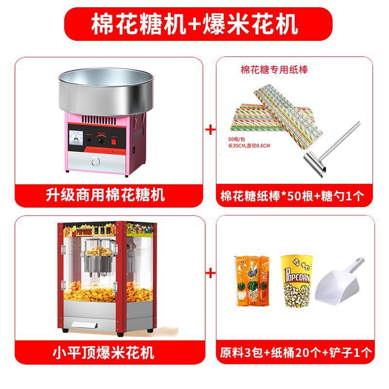 • 업그레이드된 상업용 솜사탕 기계 + 소형 평면 팝콘 기계
