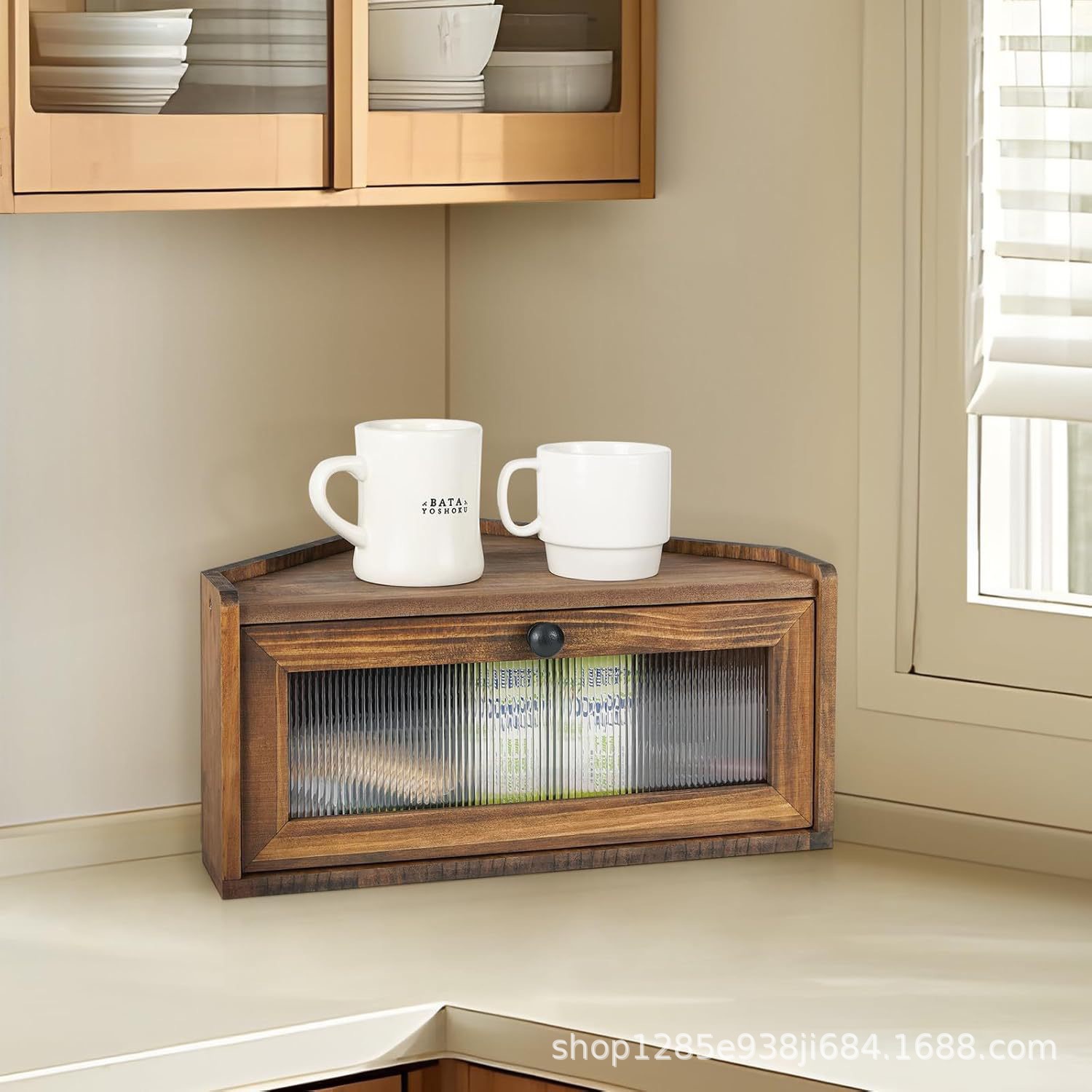 주방 나무 빵 보관함 가정용 방진 작은 보관 캐비닛 도어가있는 조리대 나무 빵 상자