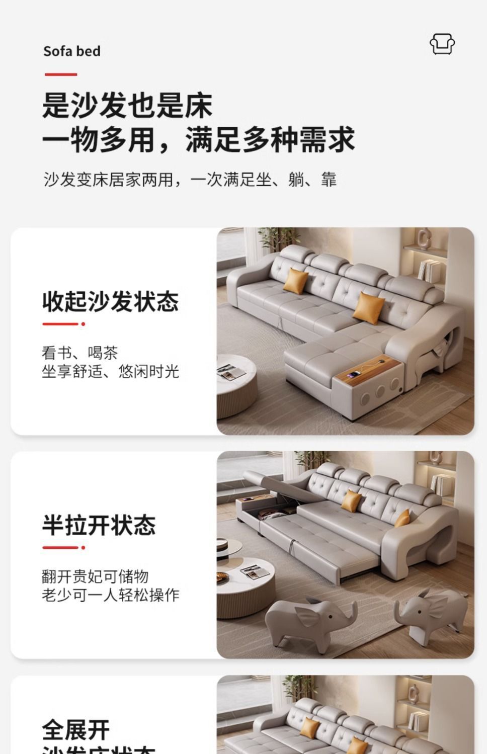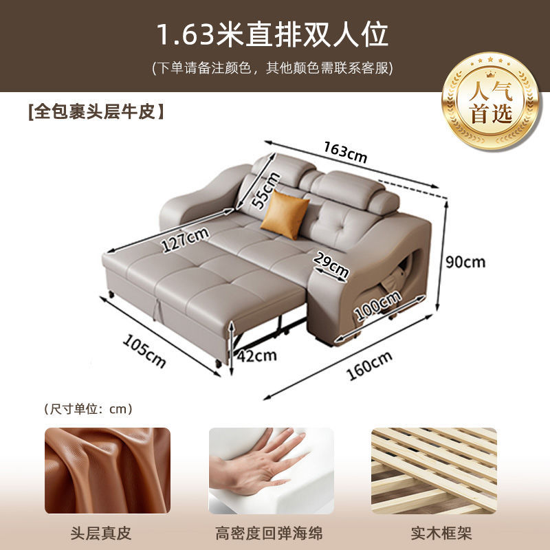 다기능 가죽 소파 거실 접이식 개폐식 수납 소형 가정용 1층 소가죽 소파 베드 일체형 이중 목적스토어 가기