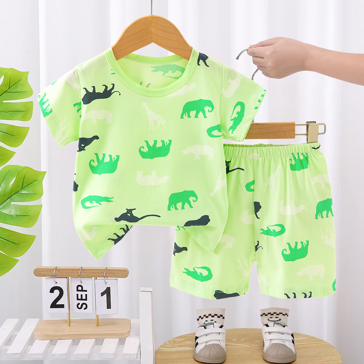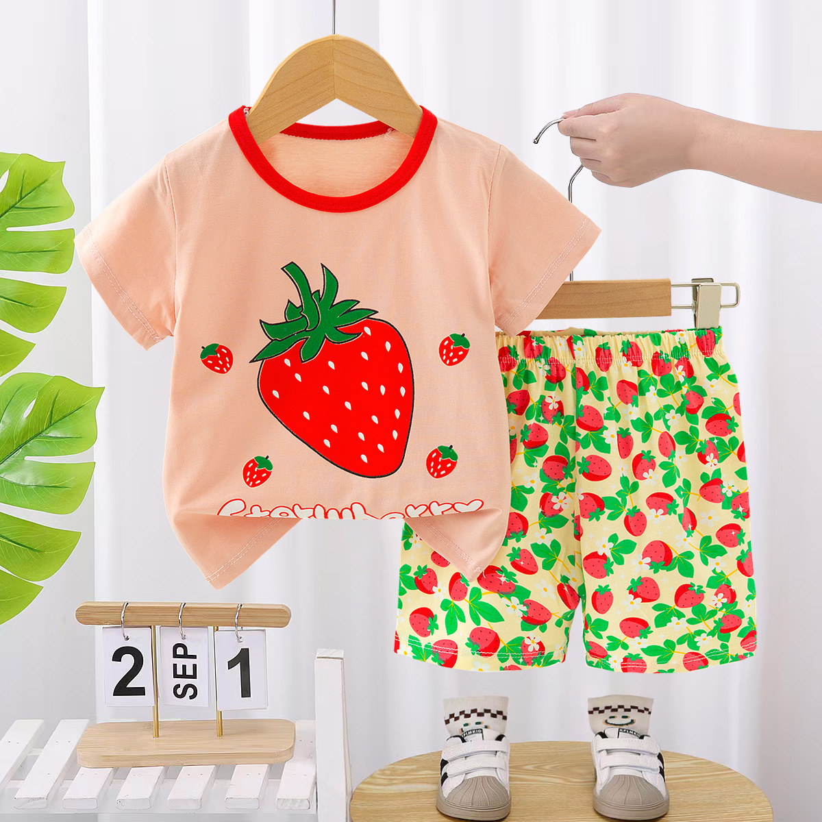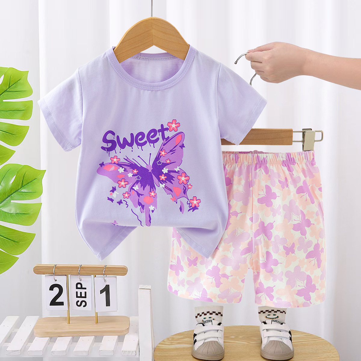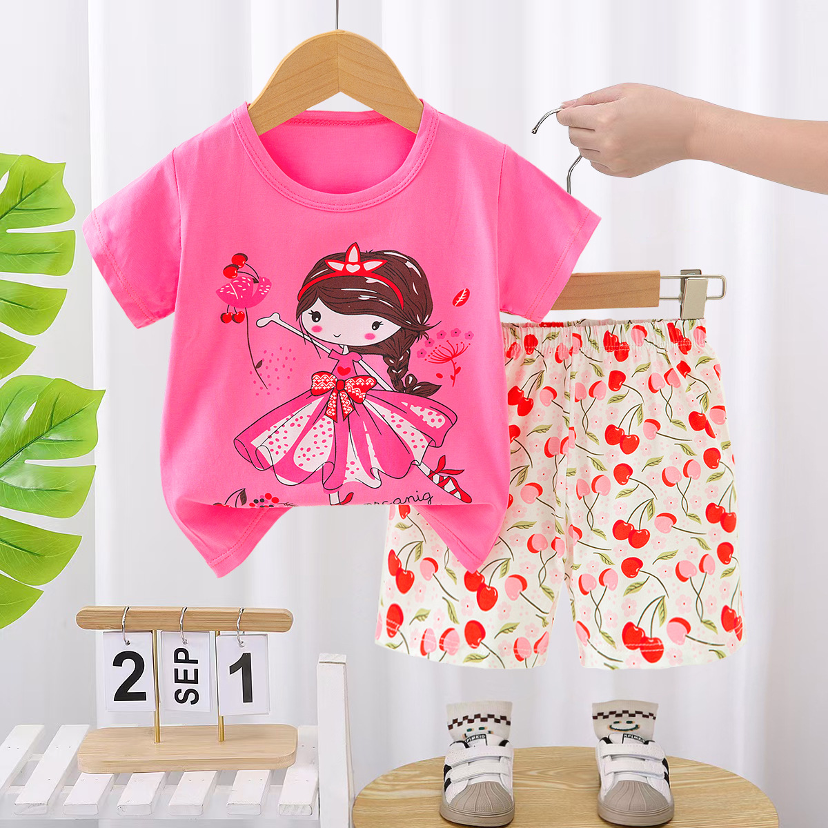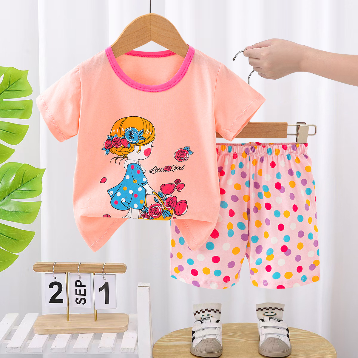 새로운 어린이 홈웨어 잠옷 여름 면화 속옷 세트 중공 얇은 에어컨 의류 소녀 투피스 세트스토어 가기