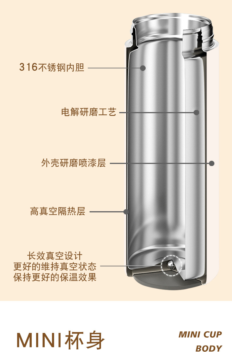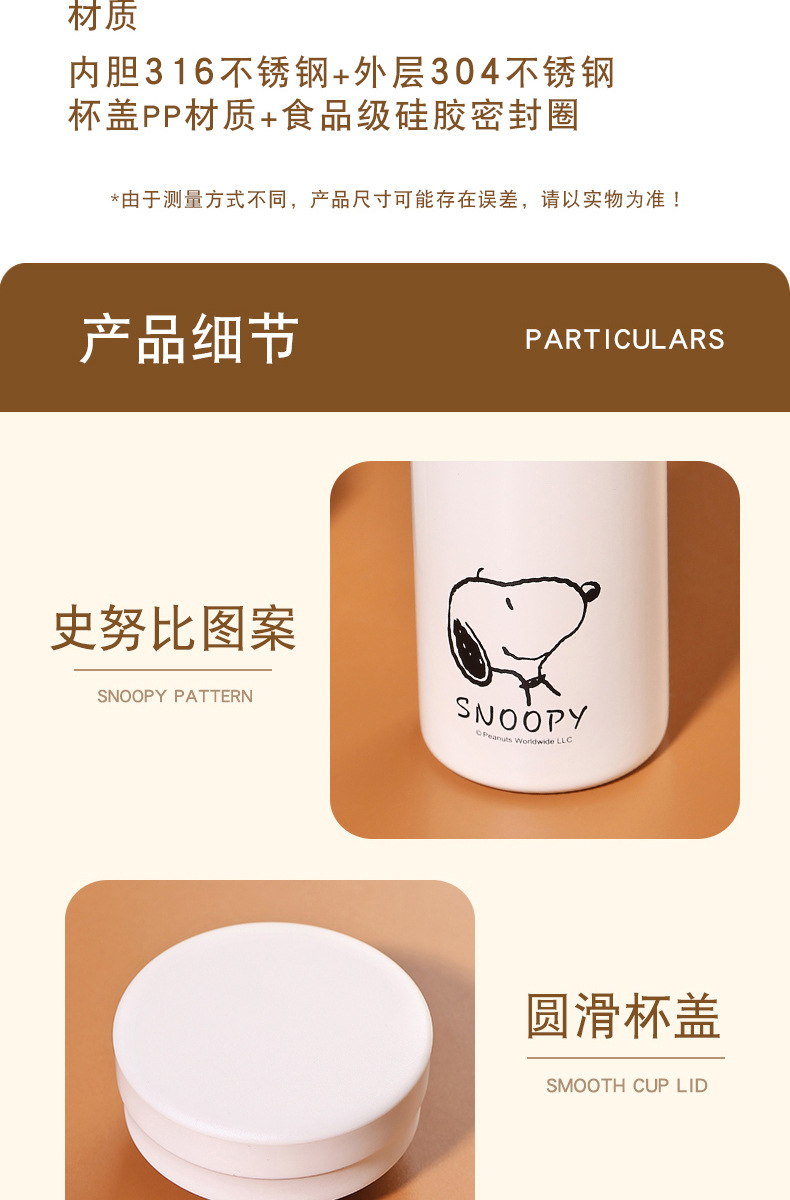 스누피 포켓 보온병 컵 316 스테인레스 스틸 미니 워터 컵 여성용 휴대용 보온병 컵 소녀 컴팩트 컵