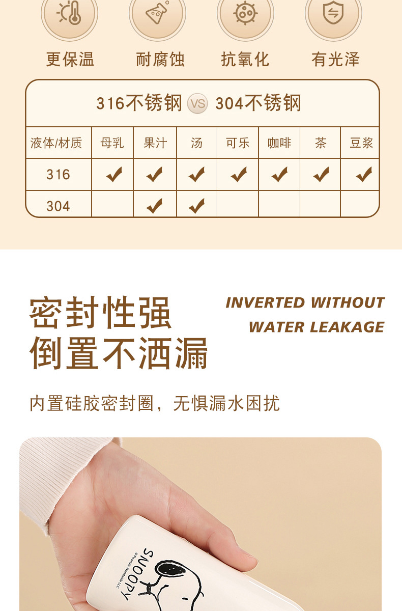 스누피 포켓 보온병 컵 316 스테인레스 스틸 미니 워터 컵 여성용 휴대용 보온병 컵 소녀 컴팩트 컵스토어 가기