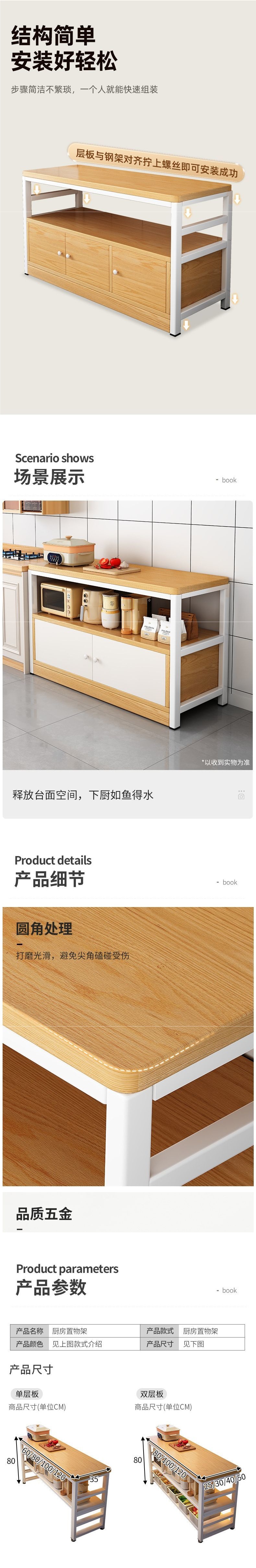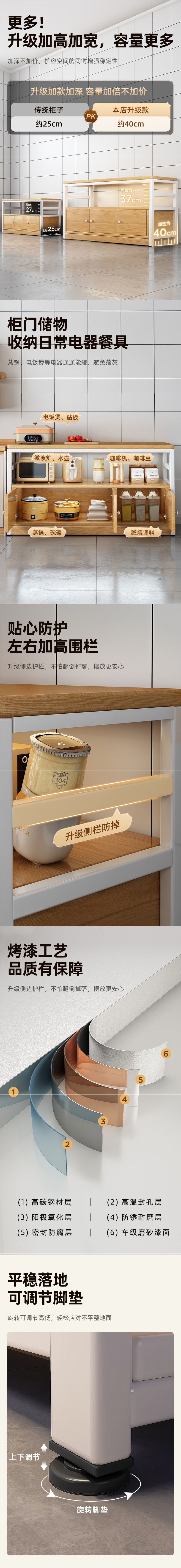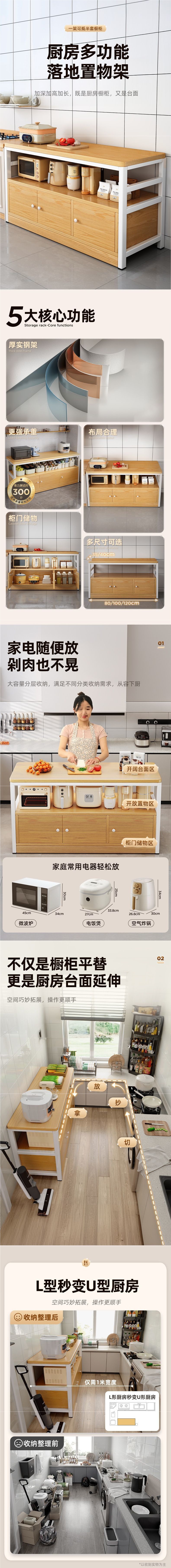 주방 다기능 수납 선반 캐비닛 바닥에서 천장까지 야채 절단 테이블 작업대 다층 전자 레인지 수납 캐비닛 좁은 측면 캐비닛스토어 가기