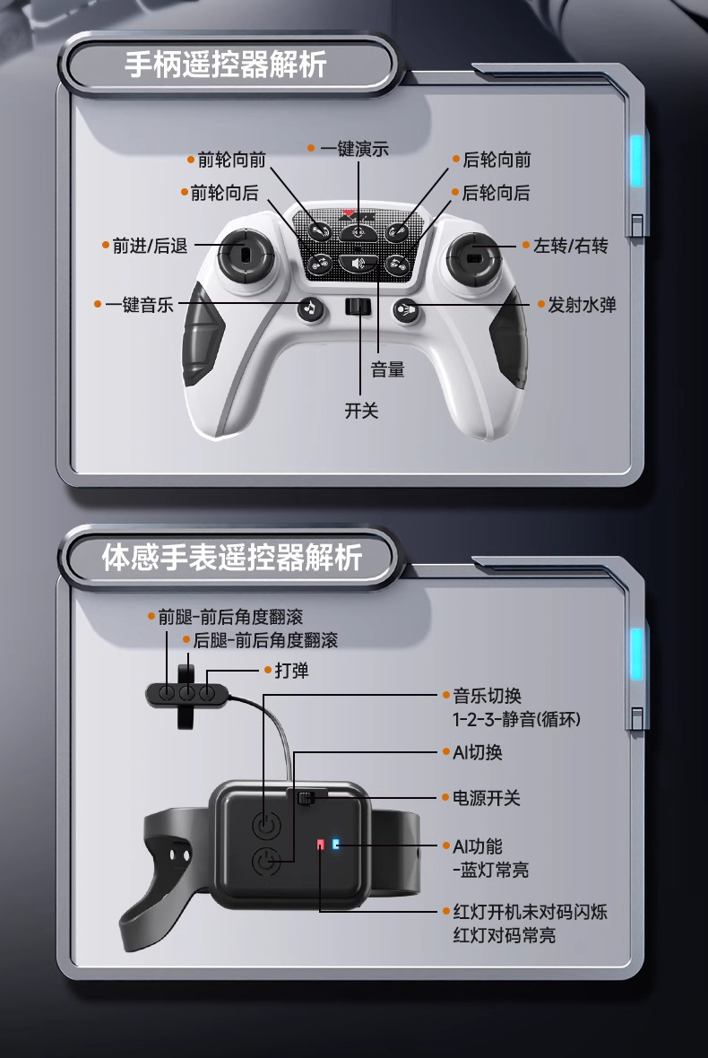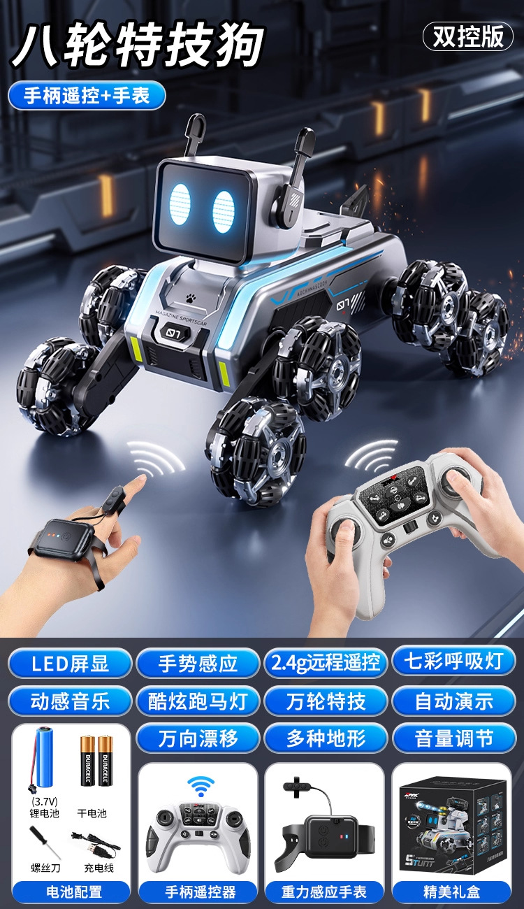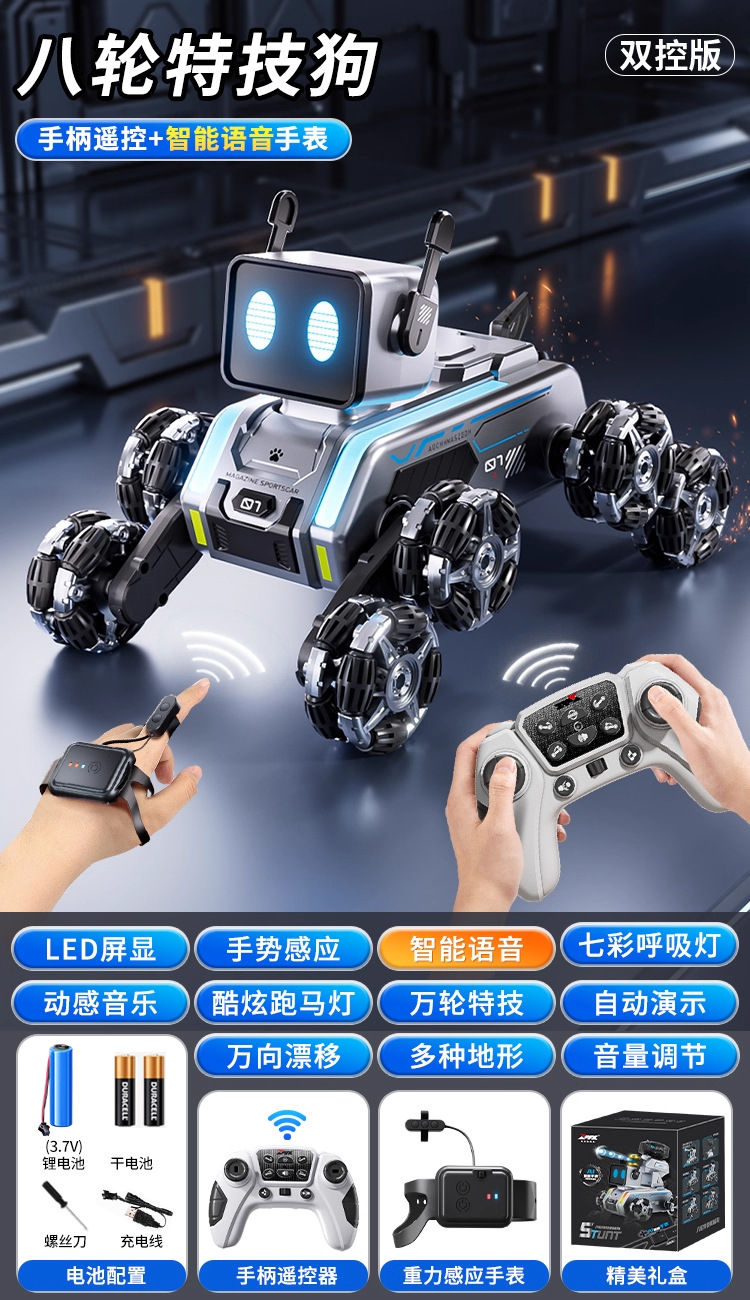 • 업그레이드 버전 - 8륜 스턴트 로봇 강아지★더블 컨트롤의 선물 상자 버전 [핸들 리모컨 + 스마트 보이스 워치]