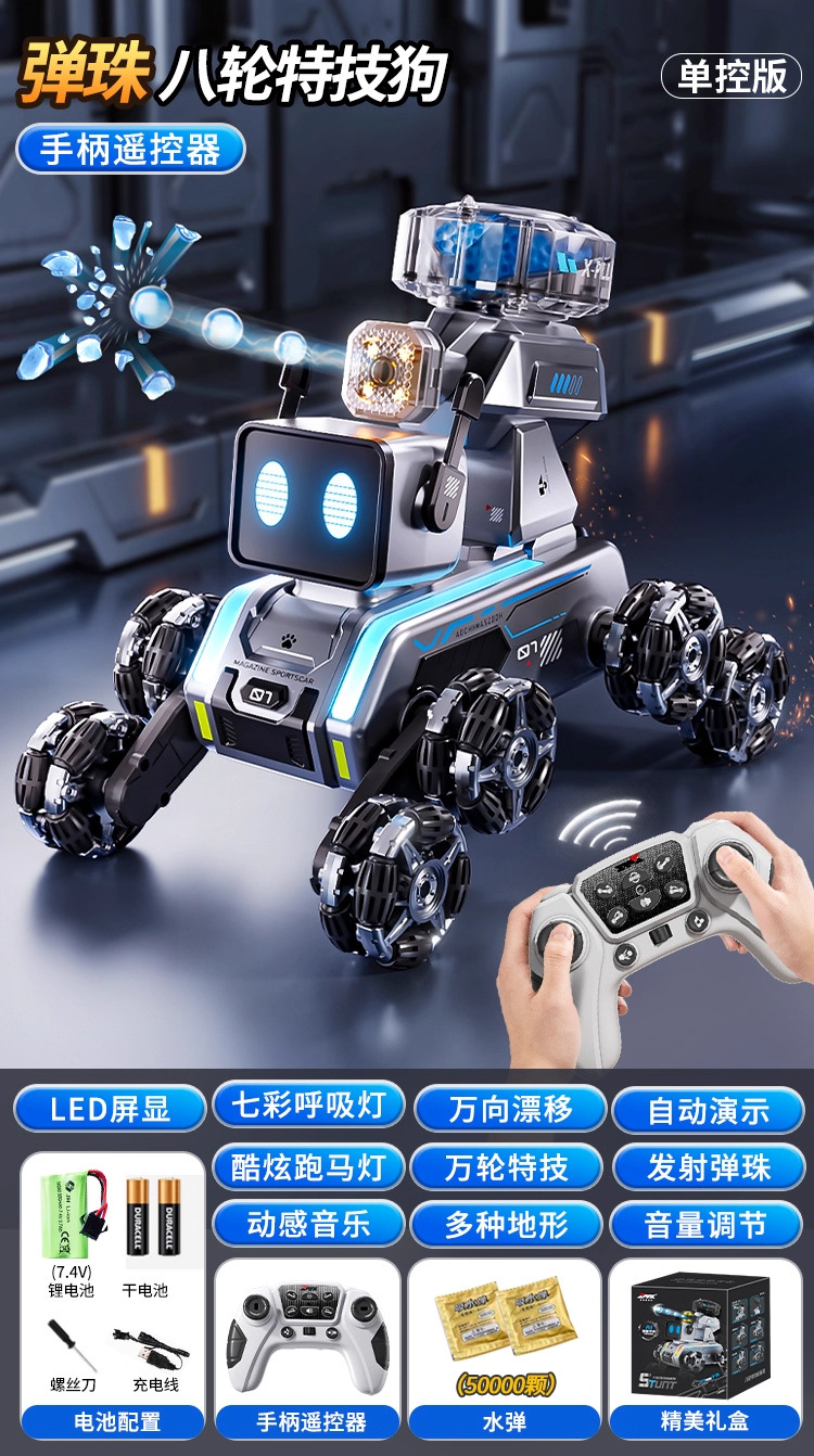 • 업그레이드된 물탄 8륜 스턴트 로봇 강아지★단일 제어 선물 상자 버전 [핸들 리모컨 + 5W 물폭탄]