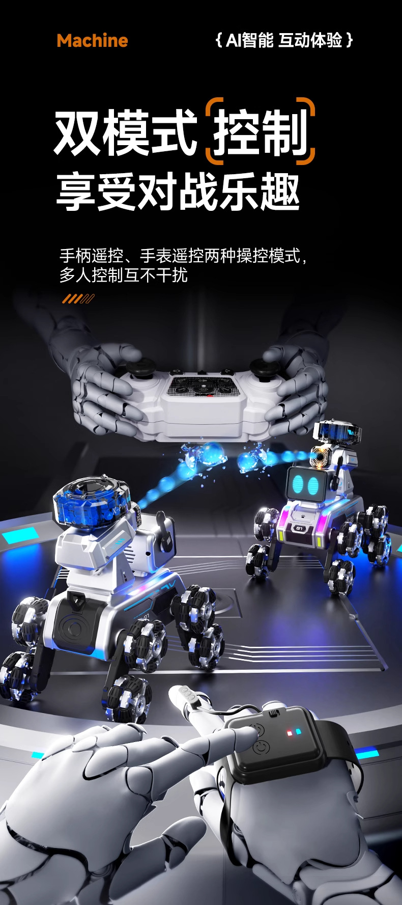 • 업그레이드 버전 - 물탄 8륜 특수 기능 로봇 강아지★더블 컨트롤의 선물 상자 버전 [핸들 리모컨 + 스마트 보이스 워치 + 1W 물폭탄]