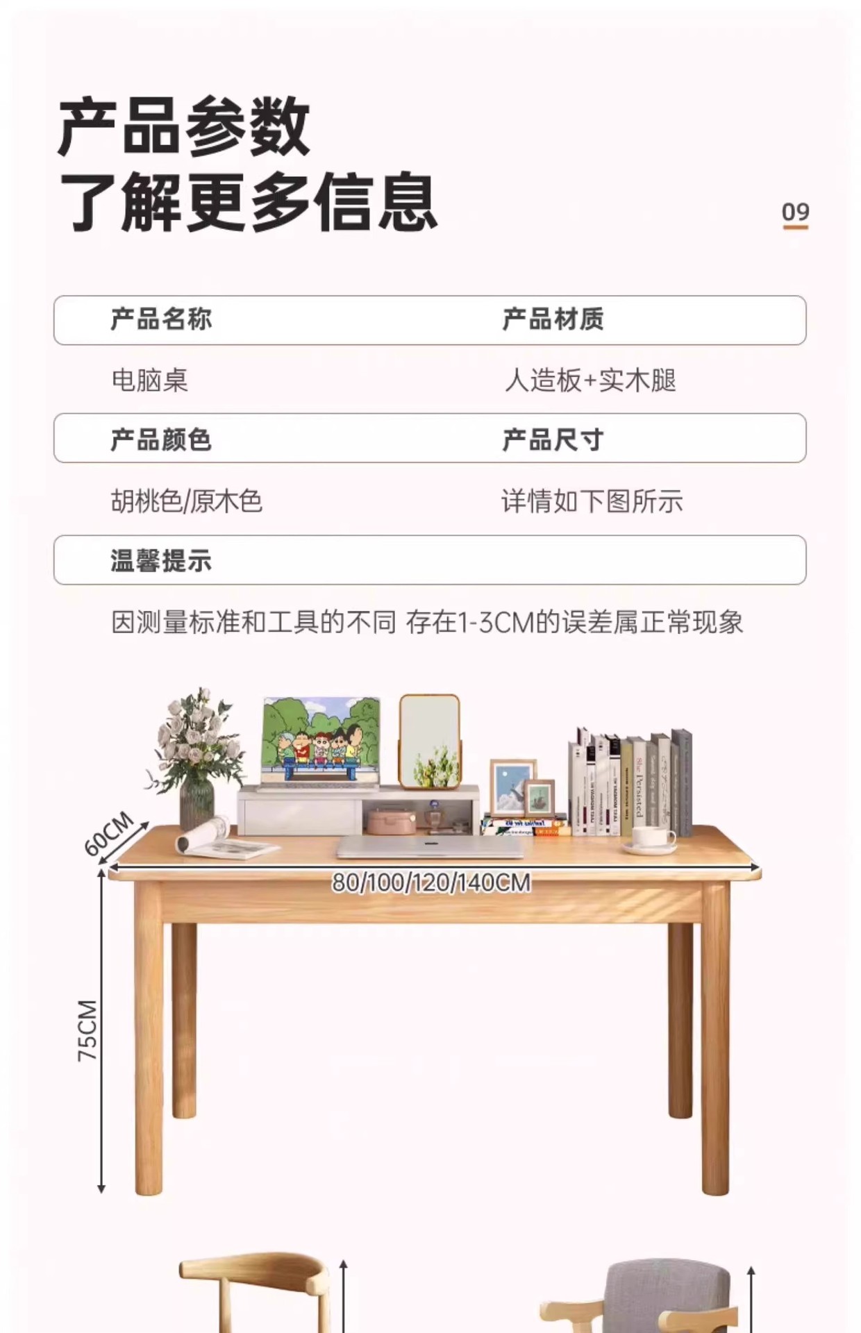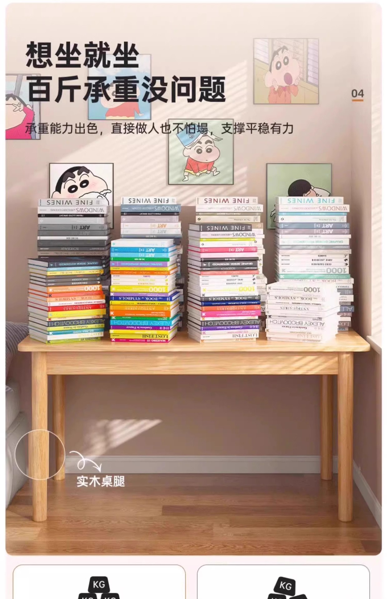 • [업그레이드되고 넓어진 원목 다리 모델] 로그 컬러 120*60*75CM