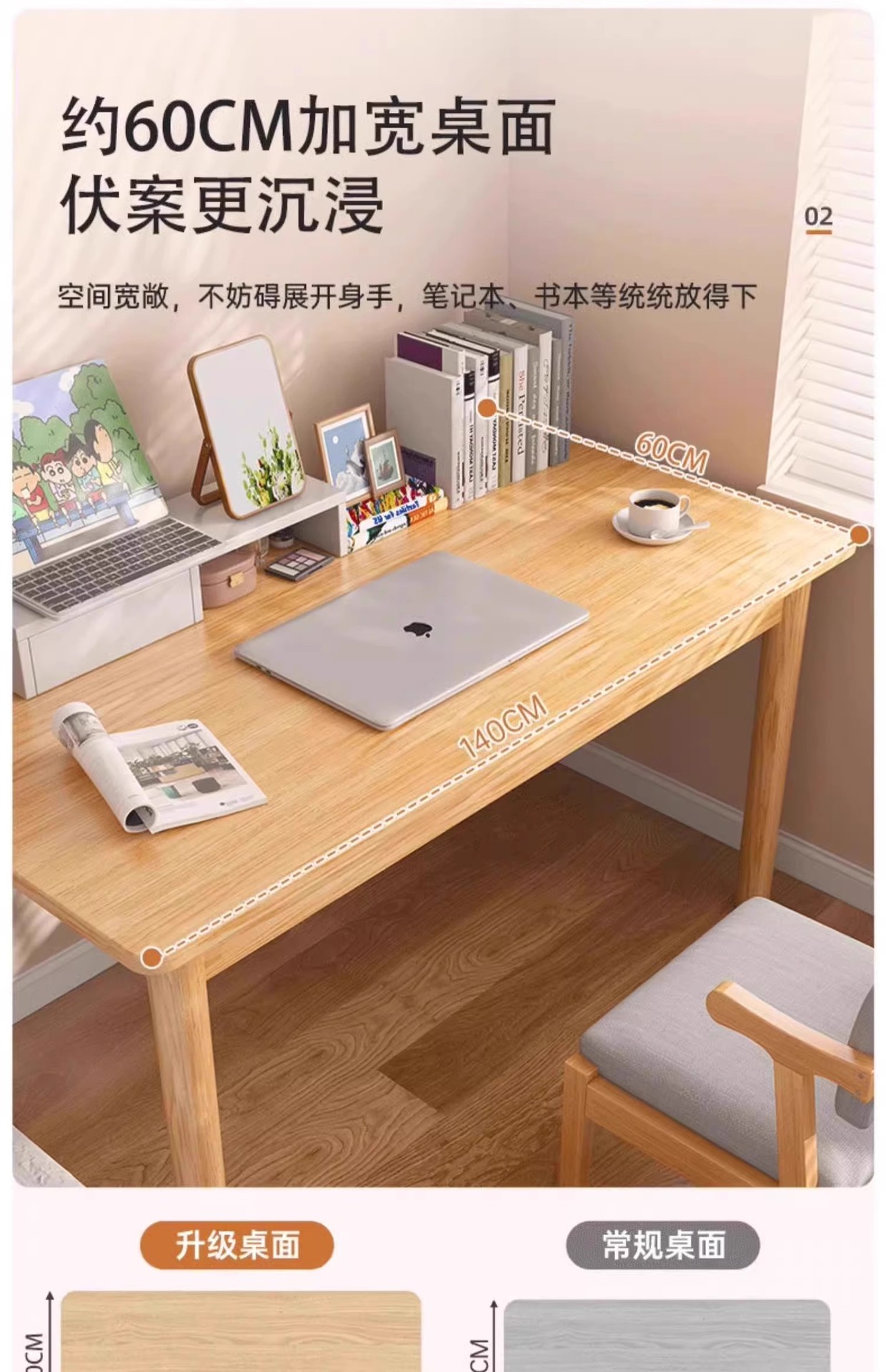 • [업그레이드되고 넓어진 원목 다리 모델] 로그 컬러 160*60*75CM