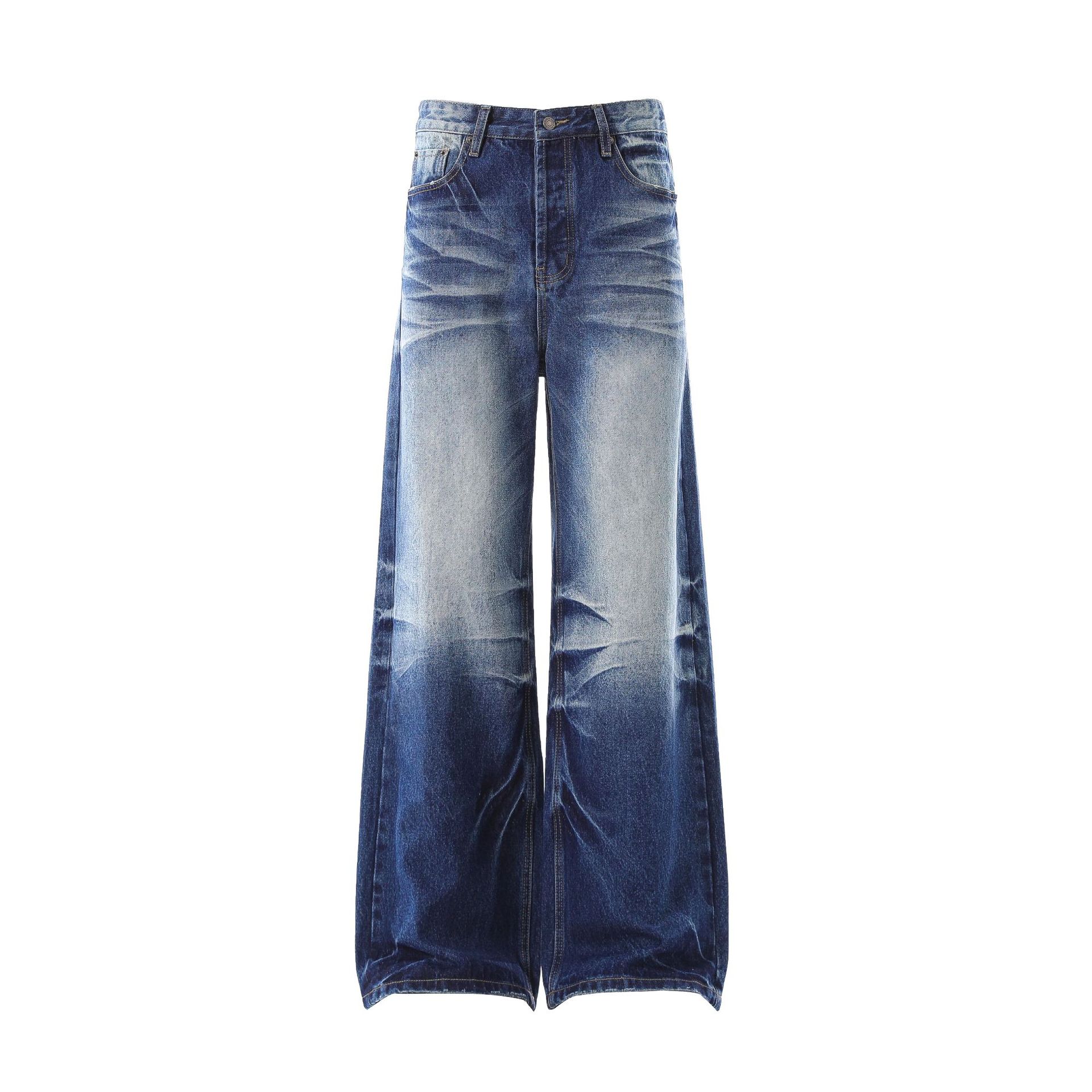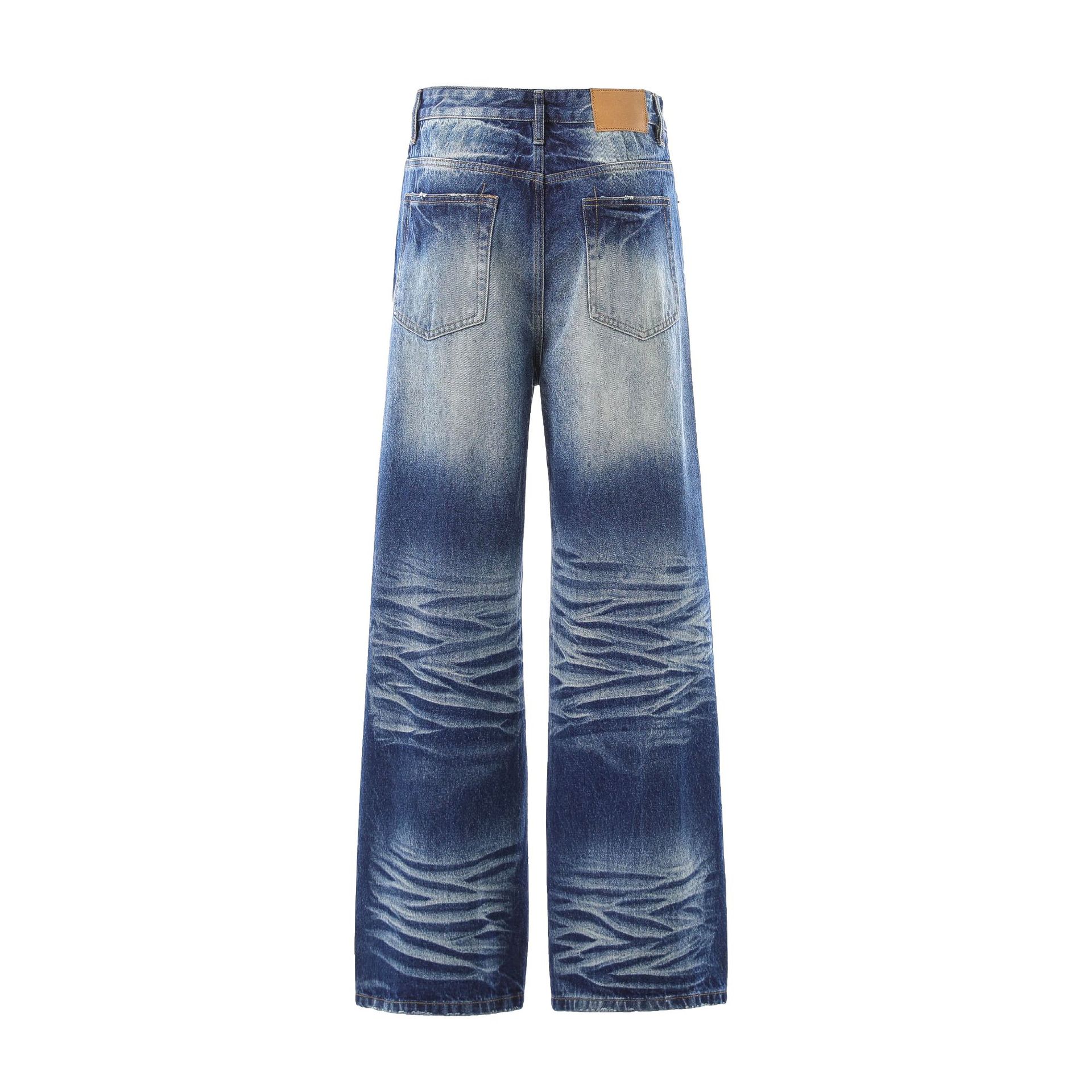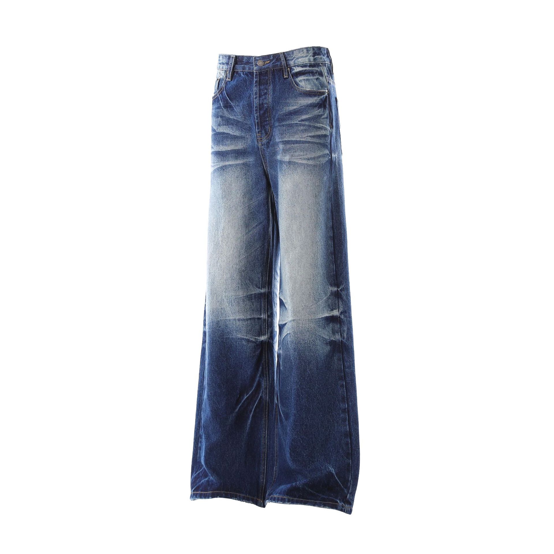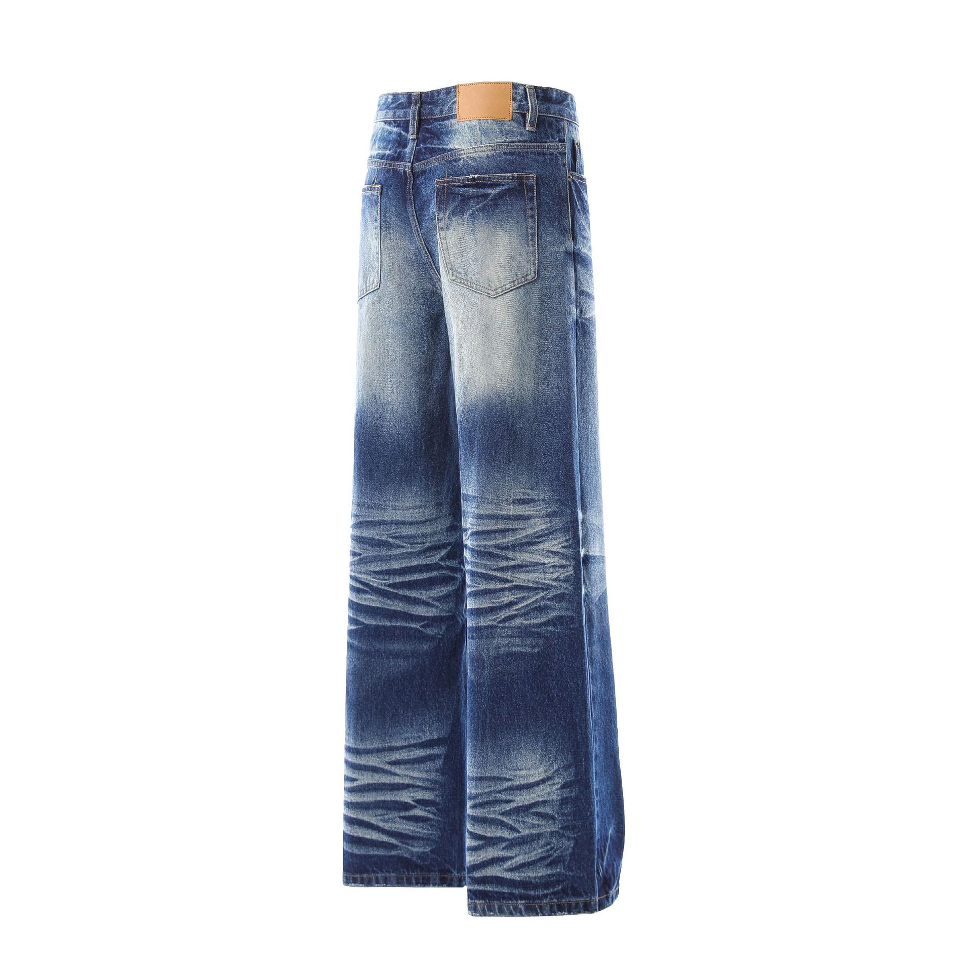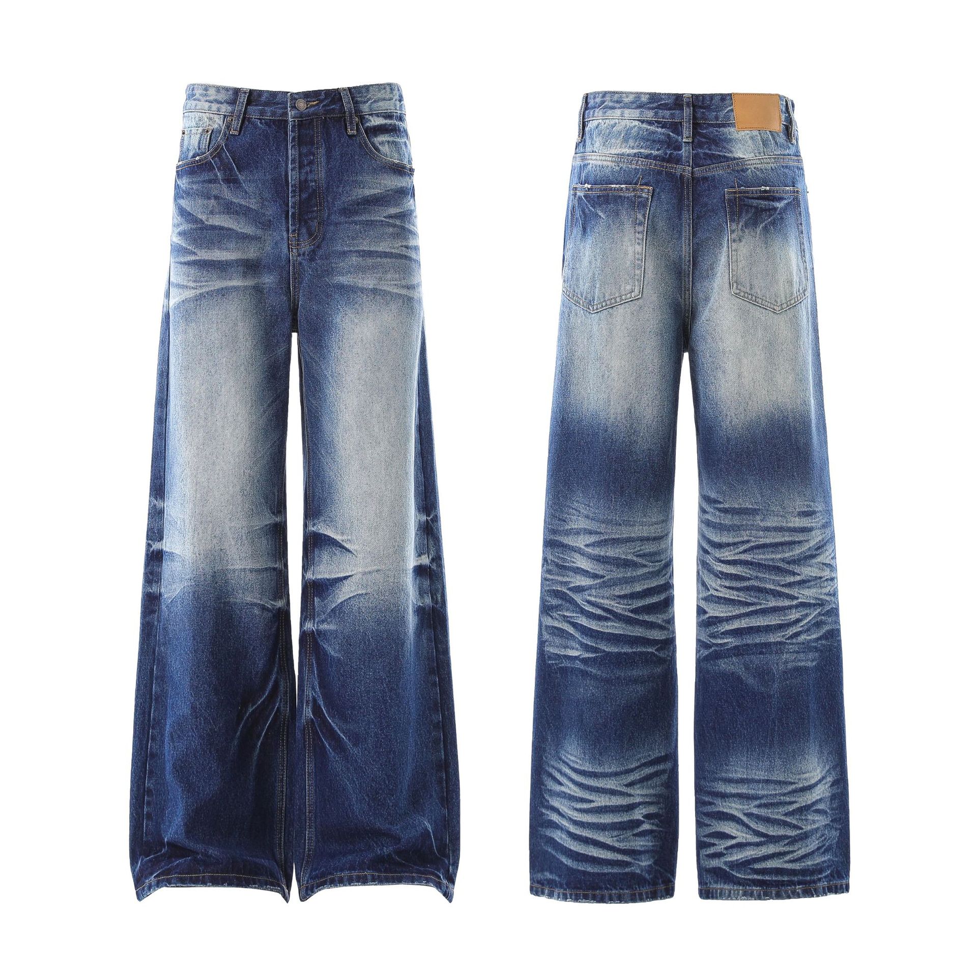 NB178 아메리칸 하이 스트리트 유니섹스 레트로 하이엔드 워싱 블루 캣 스크럽 디자인 남성용 마이크로 플레어 청바지스토어 가기