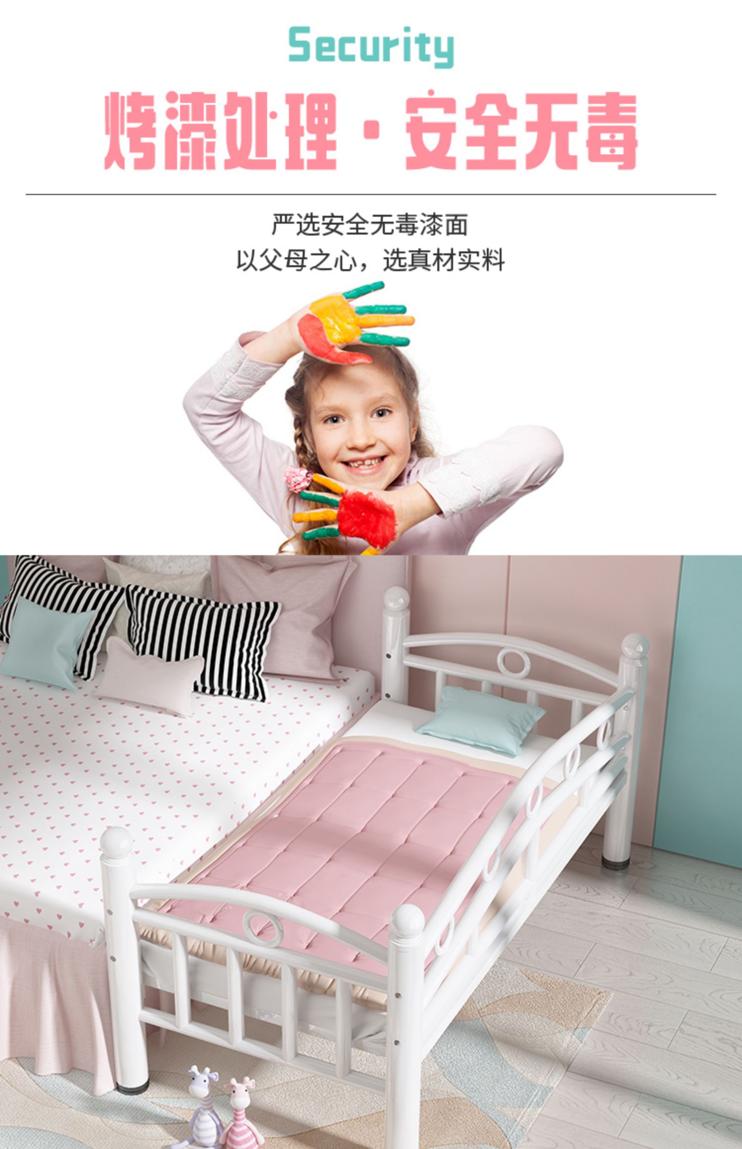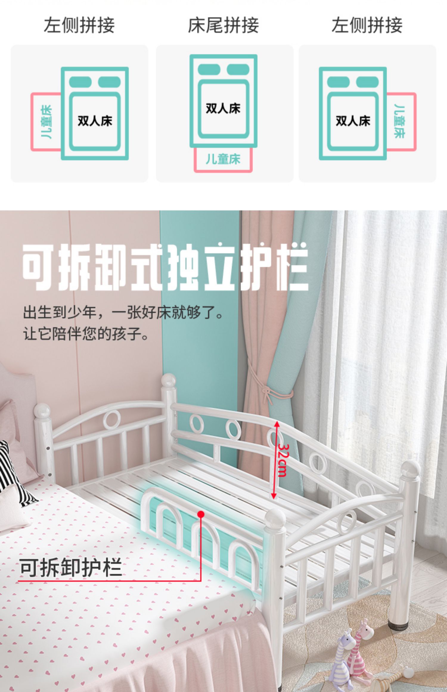 어린이 침대, 4면 가드레일, 유아용 침대, 단일 철제 침대, 아기 소년 소녀 침대 옆 침대, 확장 접합 대형 침대