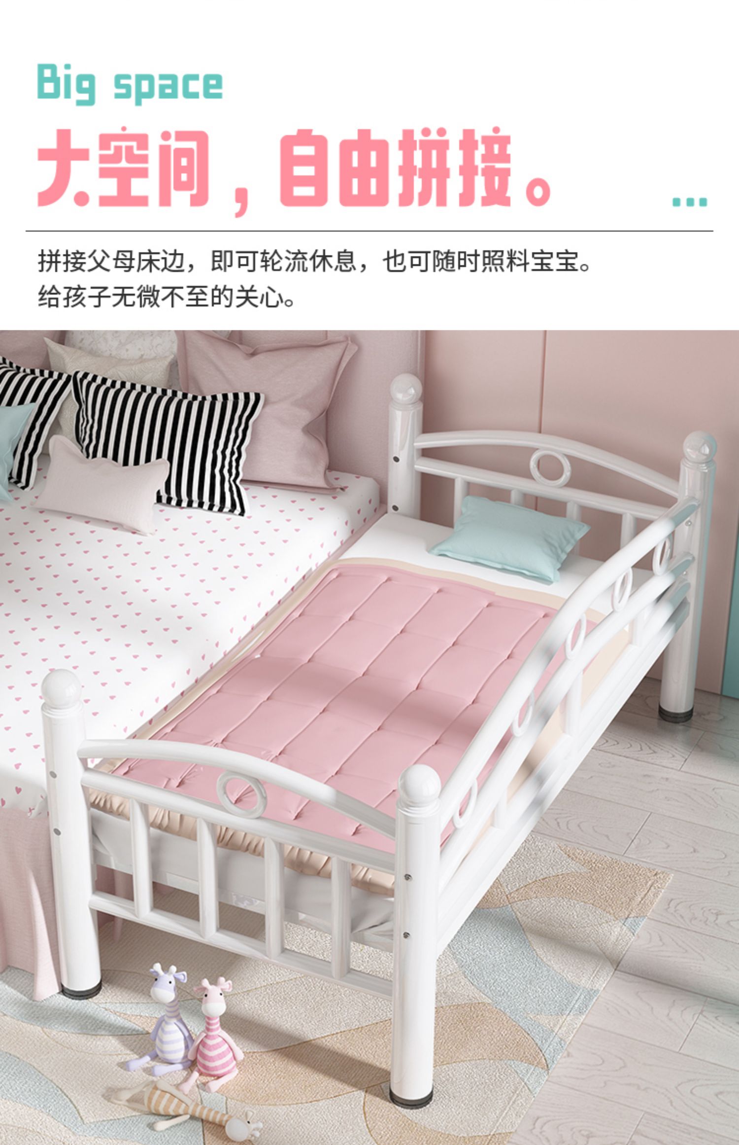어린이 침대, 4면 가드레일, 유아용 침대, 단일 철제 침대, 아기 소년 소녀 침대 옆 침대, 확장 접합 대형 침대스토어 가기