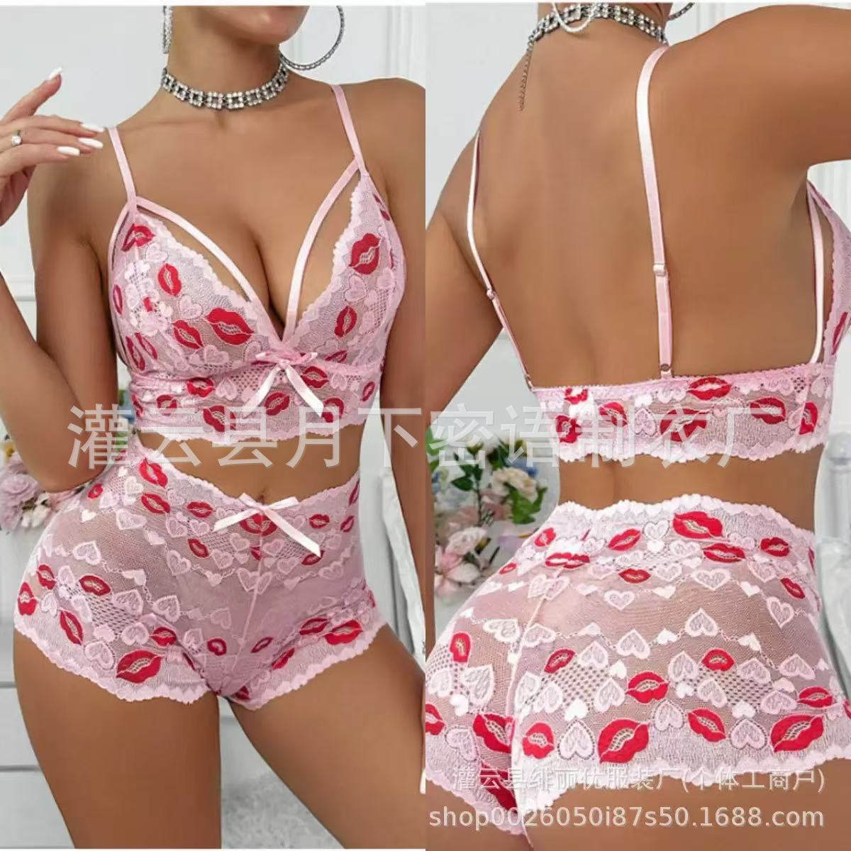 국경 간 아마존 유럽과 미국의 레이스 슬림 브라 세트 시스루 잠옷 유혹 속옷 여성용 대형 홈웨어스토어 가기