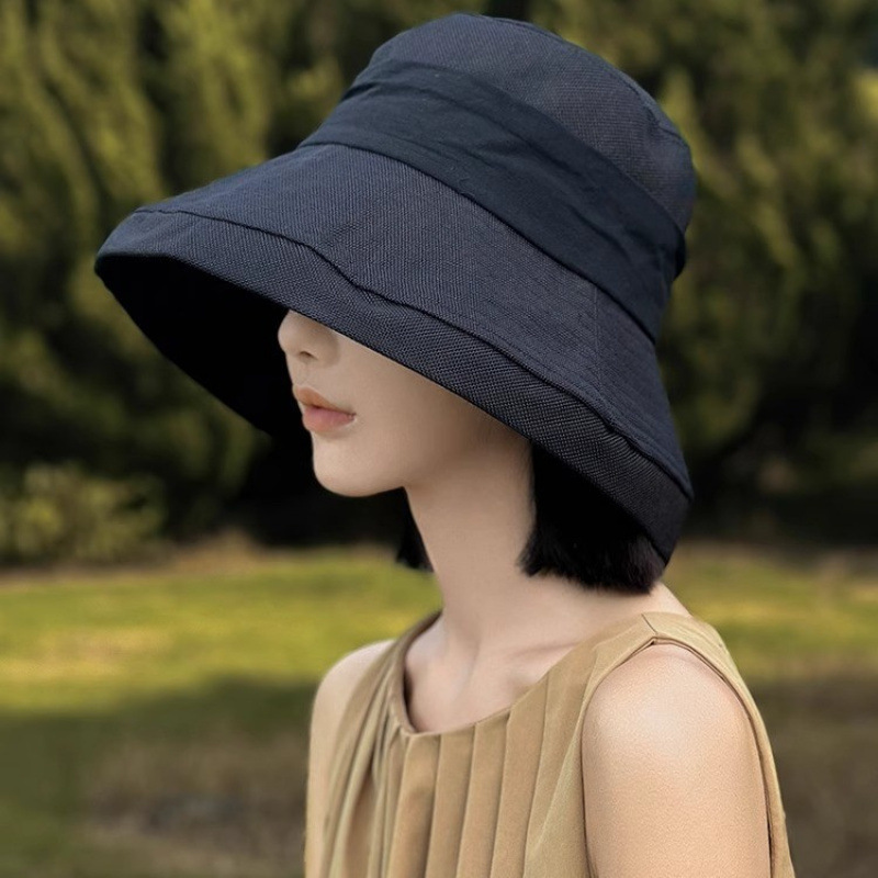 여름 여성용 일본식 챙이 큰 어부 모자 얇은 면 및 린넨 접이식 얼굴 가리개 태양 보호 얼굴 노출 방지 작은 분지 모자