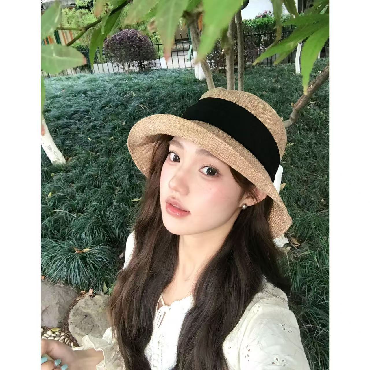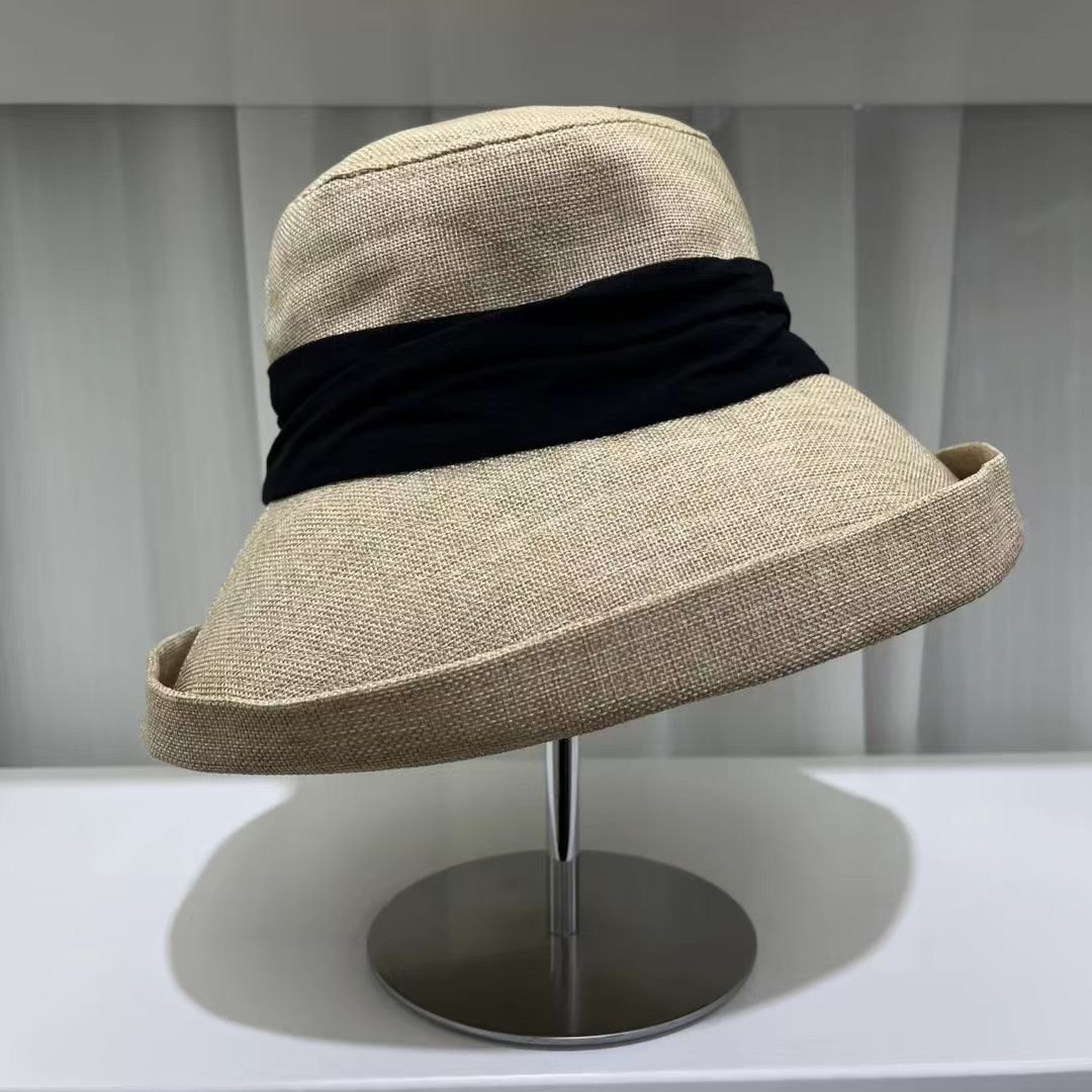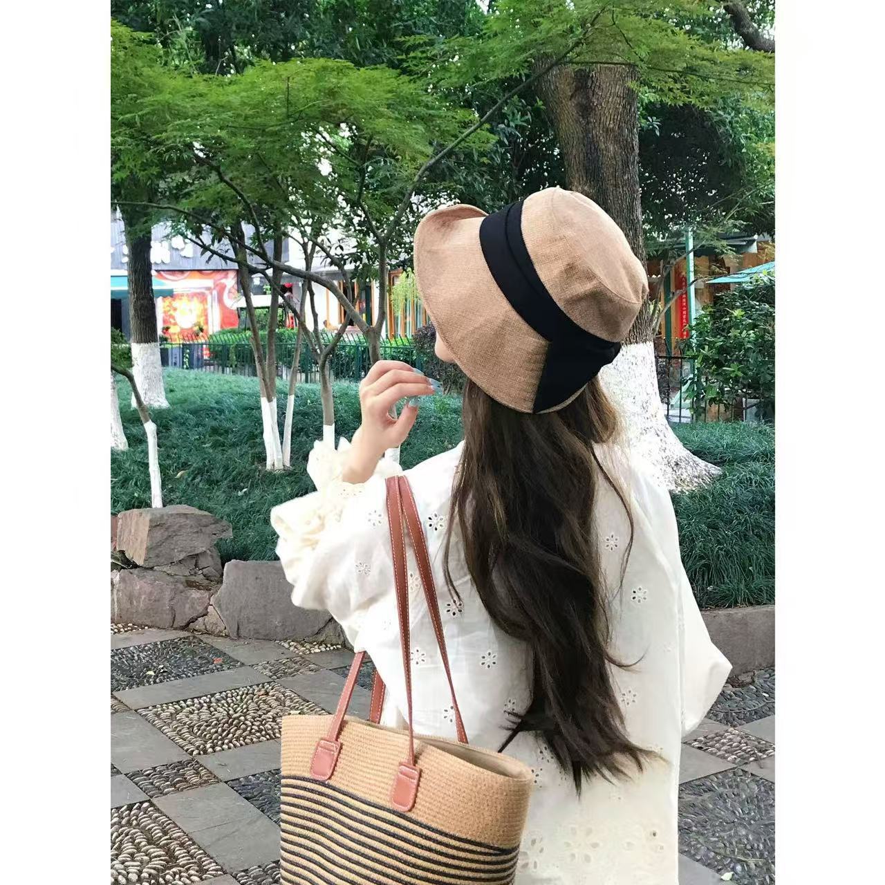 여름 여성용 일본식 챙이 큰 어부 모자 얇은 면 및 린넨 접이식 얼굴 가리개 태양 보호 얼굴 노출 방지 작은 분지 모자스토어 가기