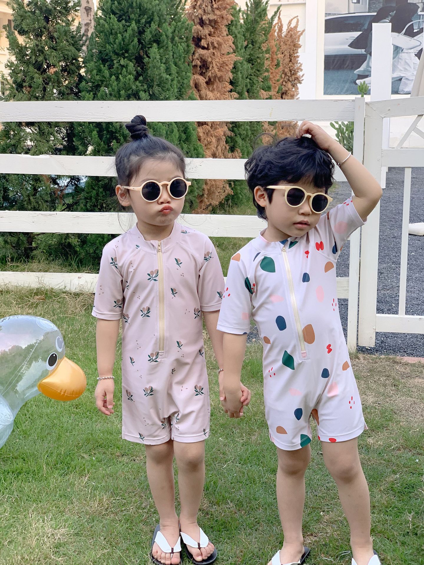 어린이 해변 휴가 소년과 소녀를위한 원피스 수영복 아기 만화 수영복 아기 태양 보호 속건 수영복
