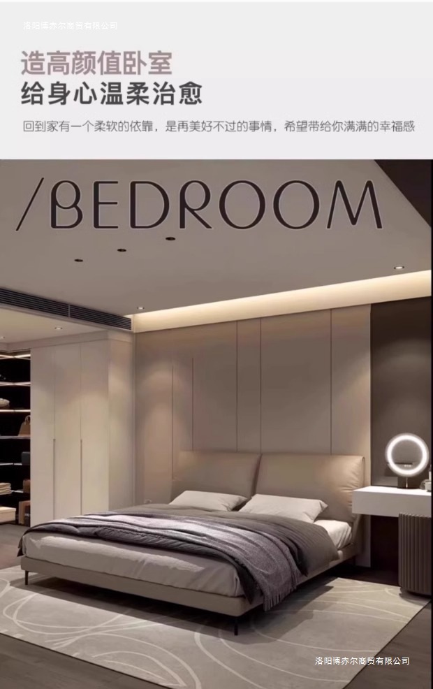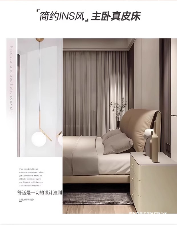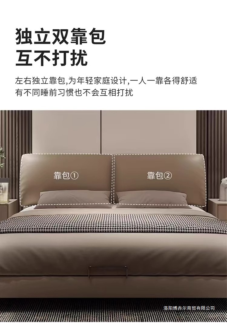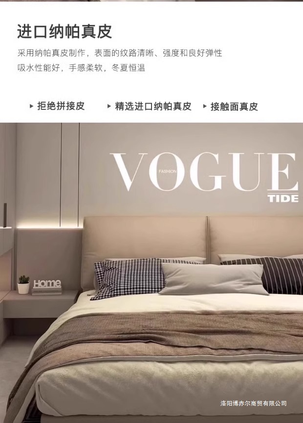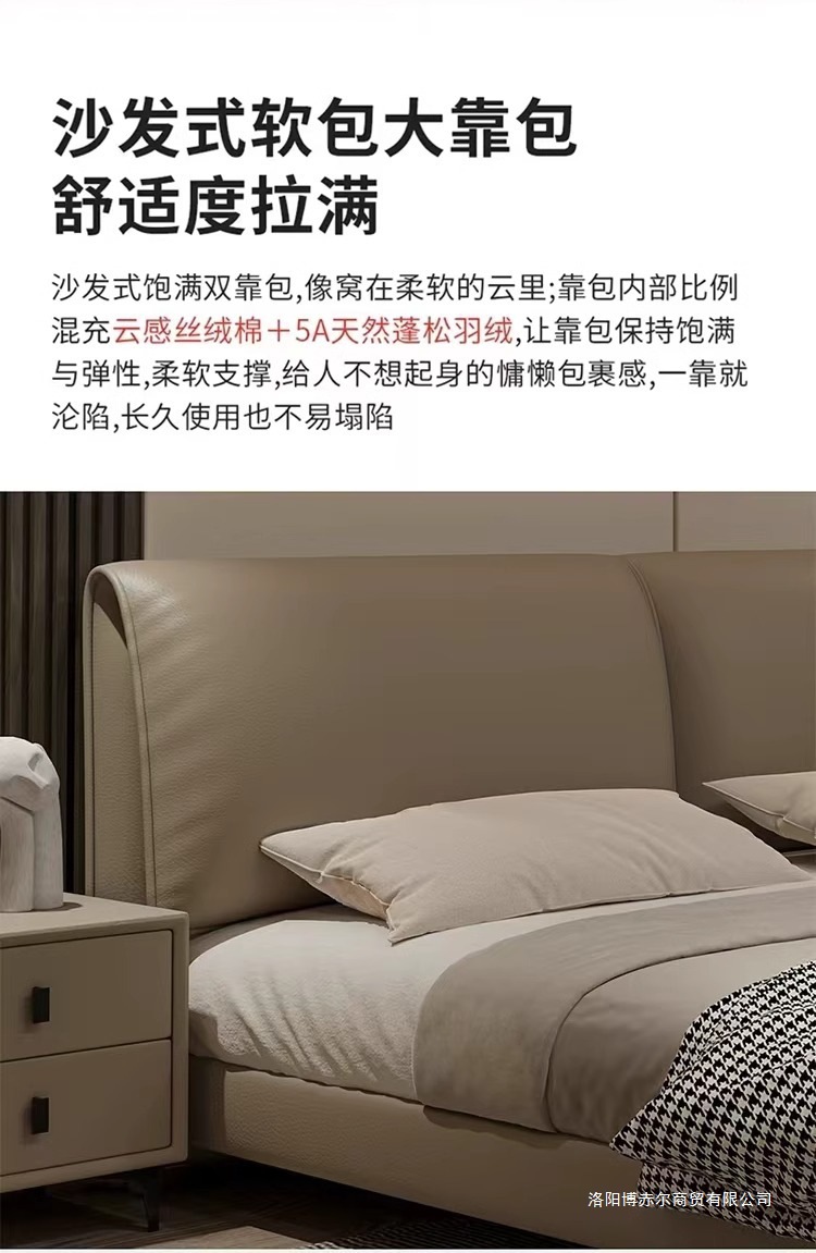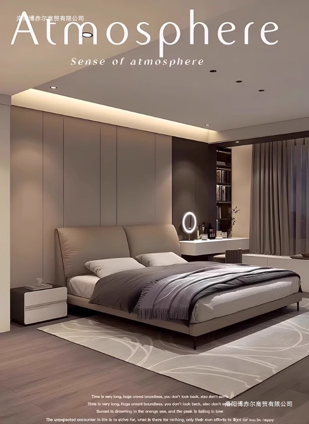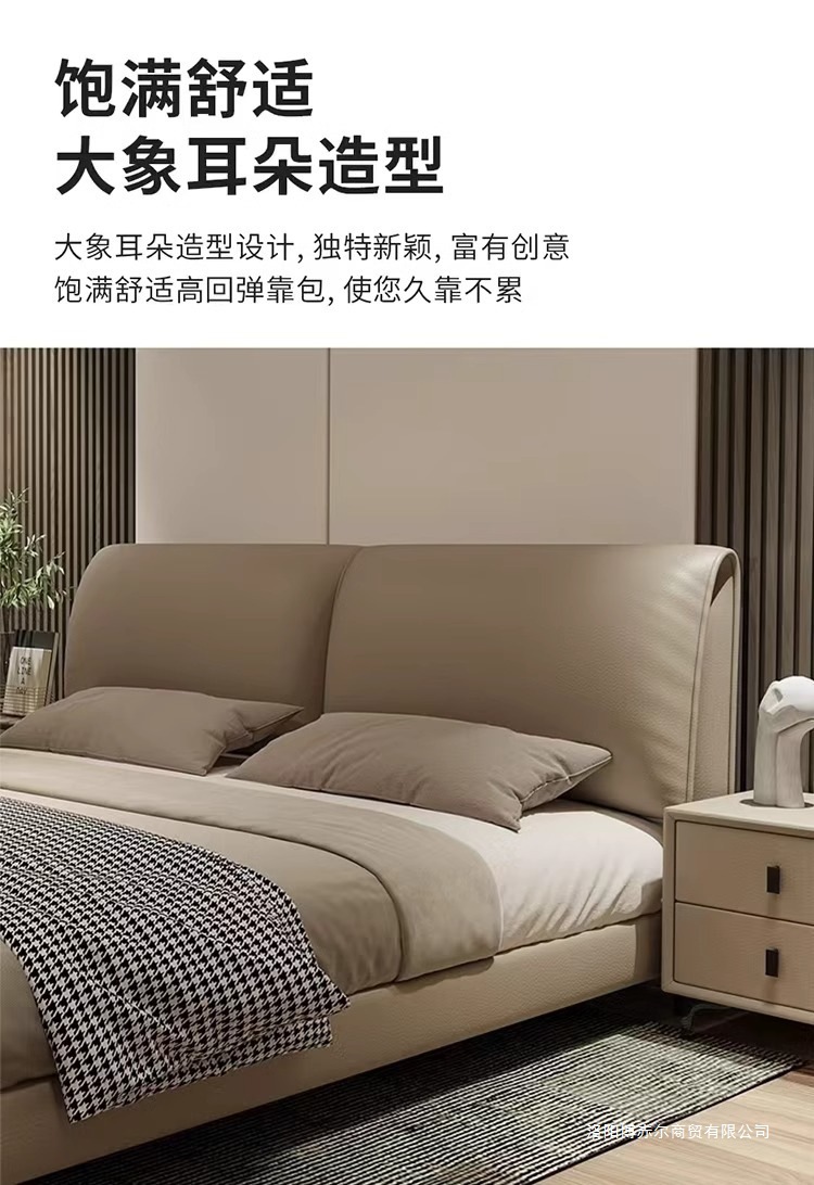 코끼리 귀 가죽 침대, 가벼운 럭셔리, 모던 이탈리안 스타일, 매우 심플한 마스터 침실, 대형 침대, 더블 웨딩 침대, 가죽 아트 침대.미터스토어 가기