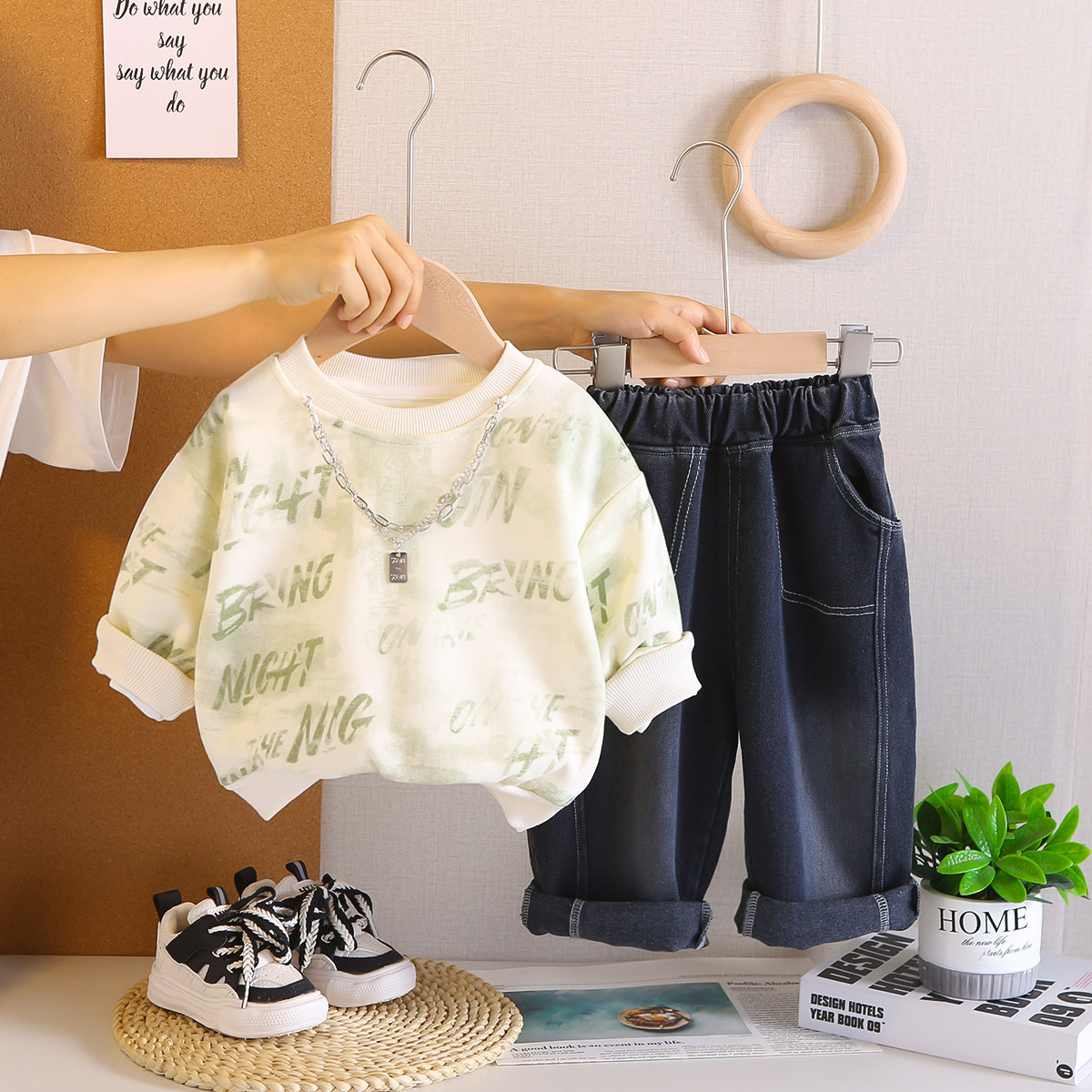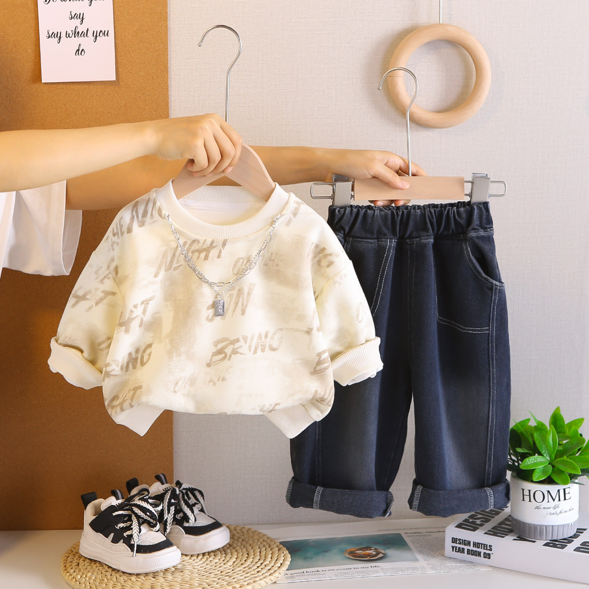 소년 정장 봄, 가을 2025 새로운 스타일 아동 의류 봄 소년 스포츠 운동복 투피스 세트스토어 가기
