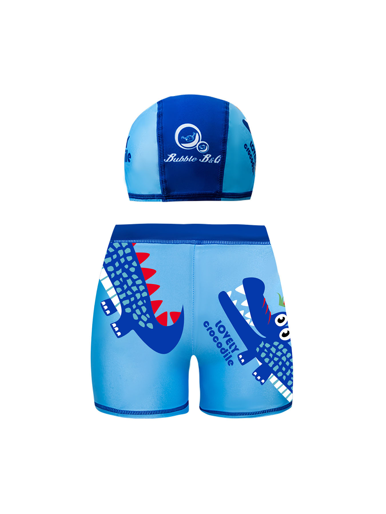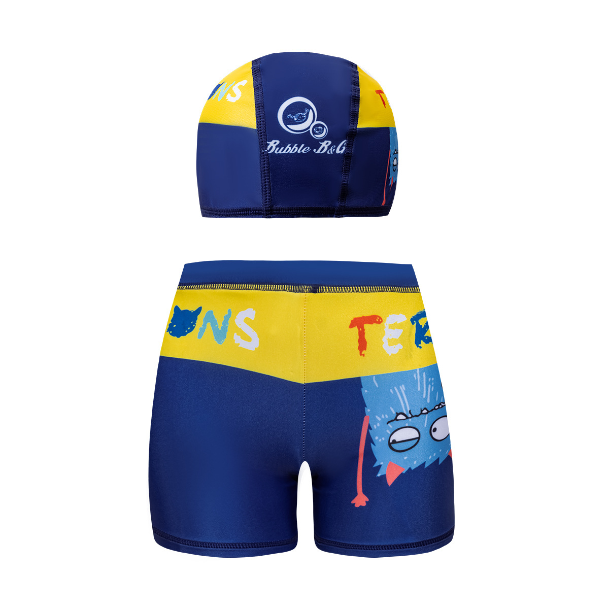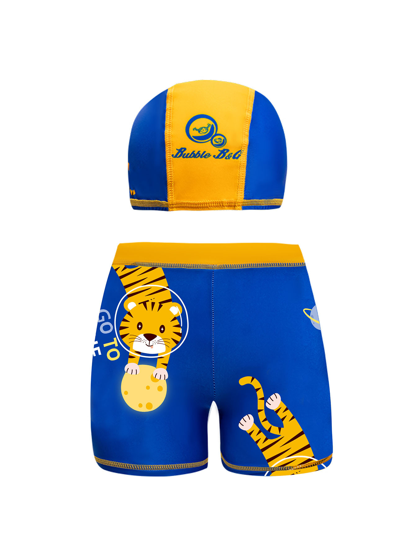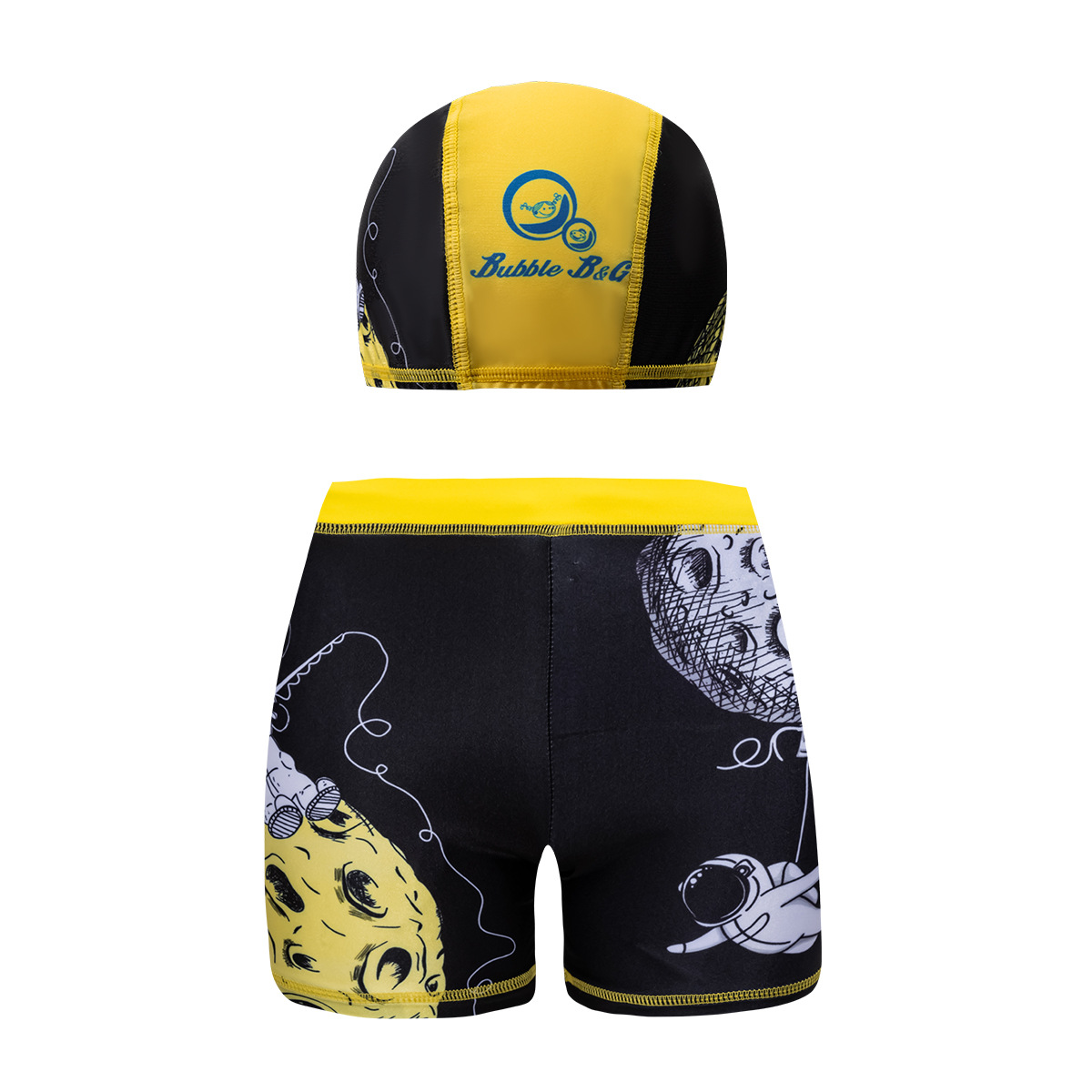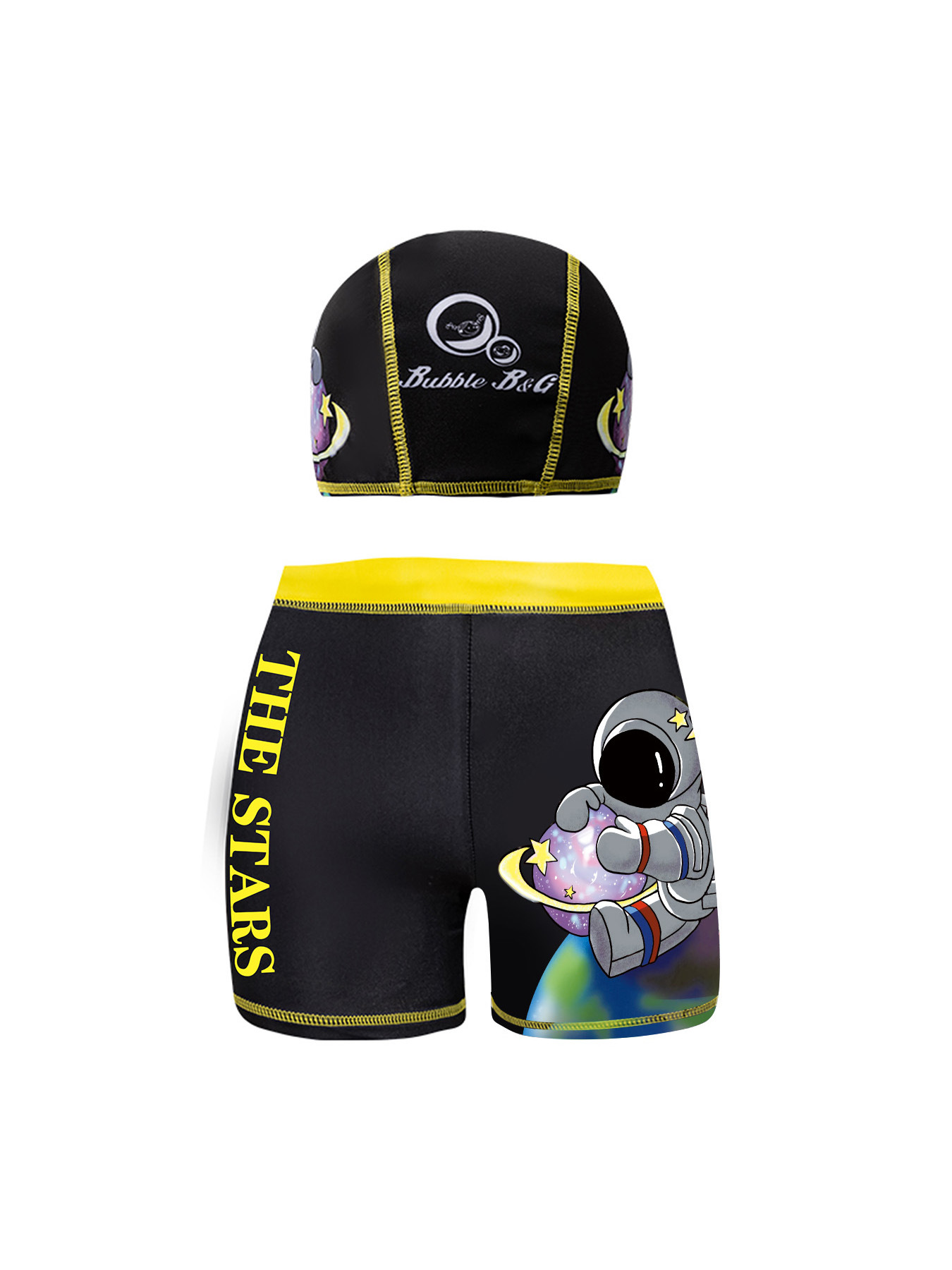 국경 간 어린이 수영 트렁크 소년 수영 트렁크 수영 모자 세트 속건성 만화 인쇄 중형 및 대형 어린이 레이스 업 복서 수영 트렁크