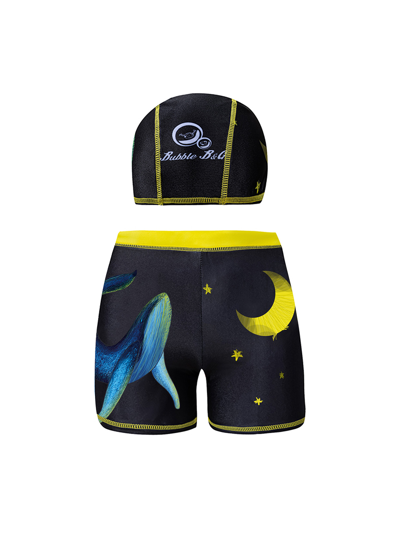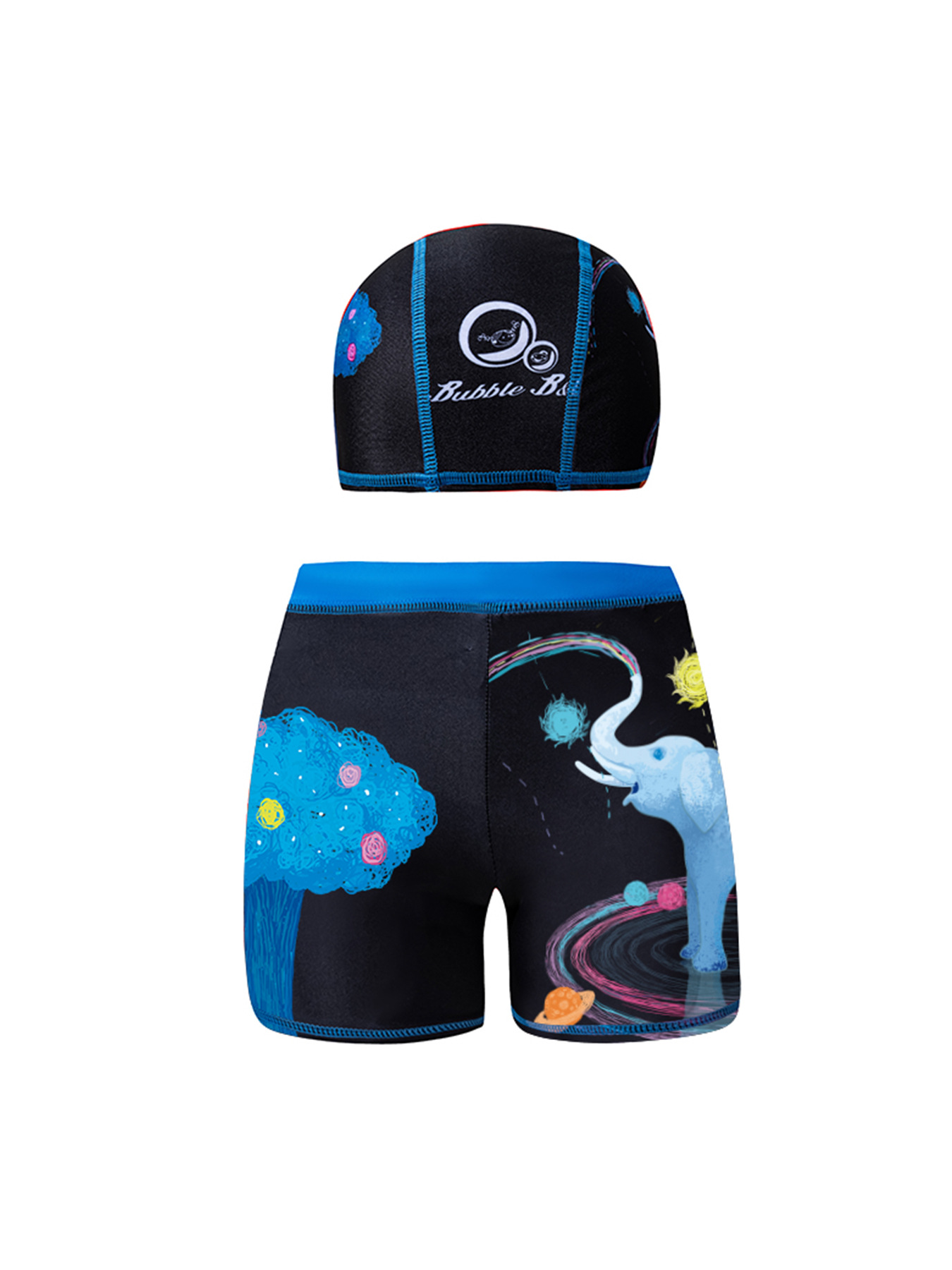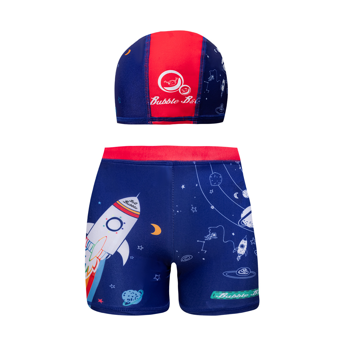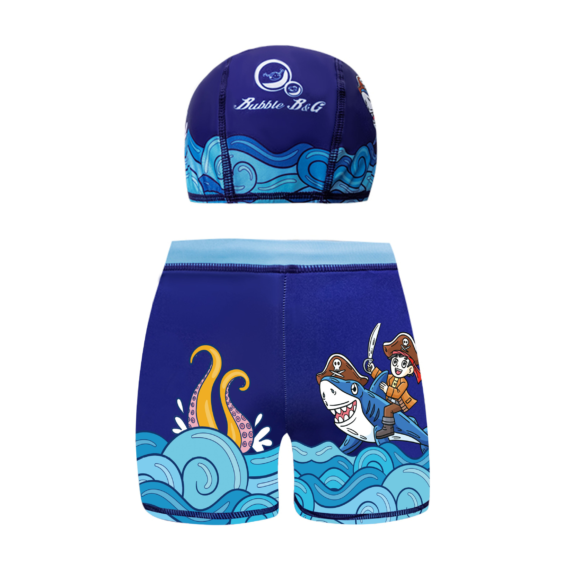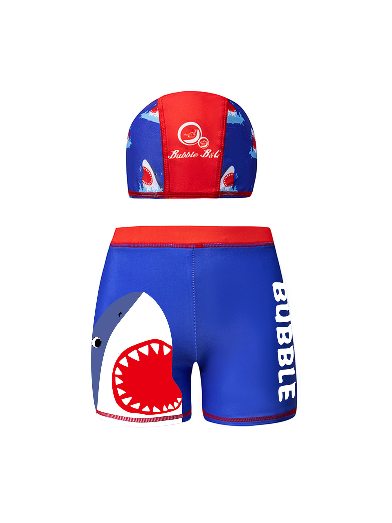 국경 간 어린이 수영 트렁크 소년 수영 트렁크 수영 모자 세트 속건성 만화 인쇄 중형 및 대형 어린이 레이스 업 복서 수영 트렁크
