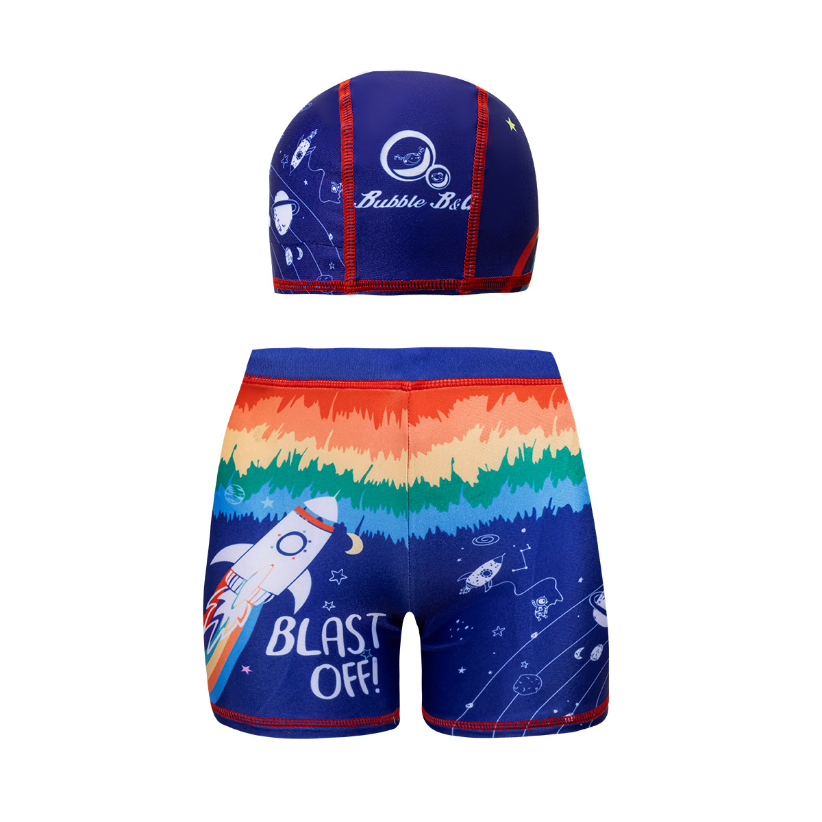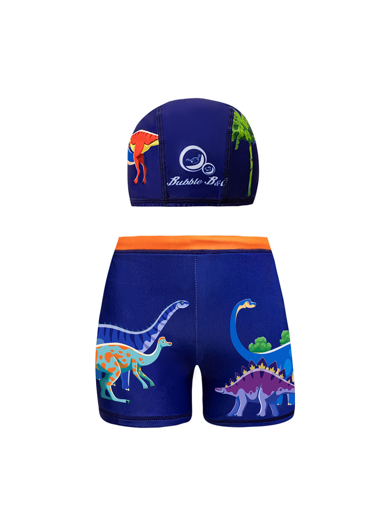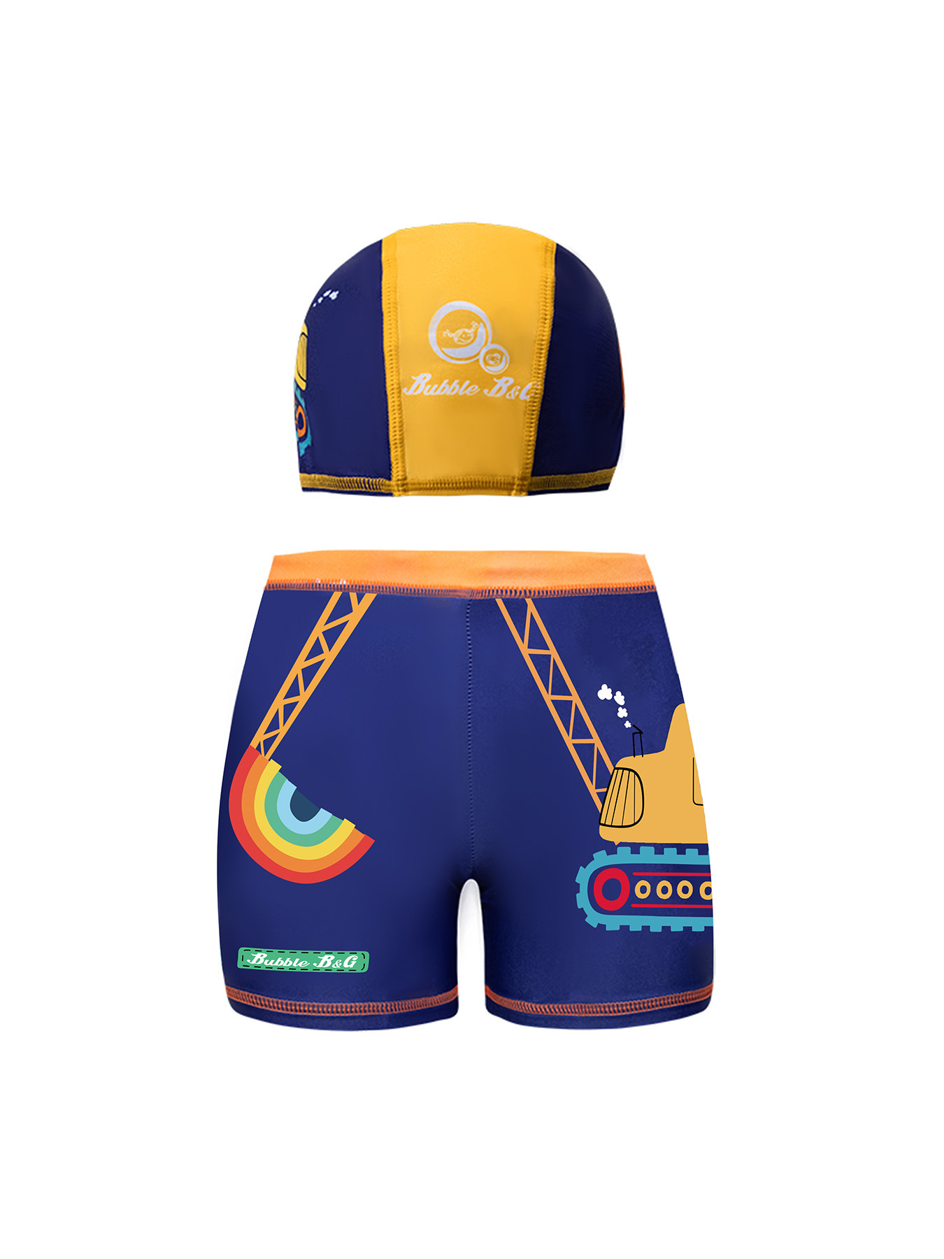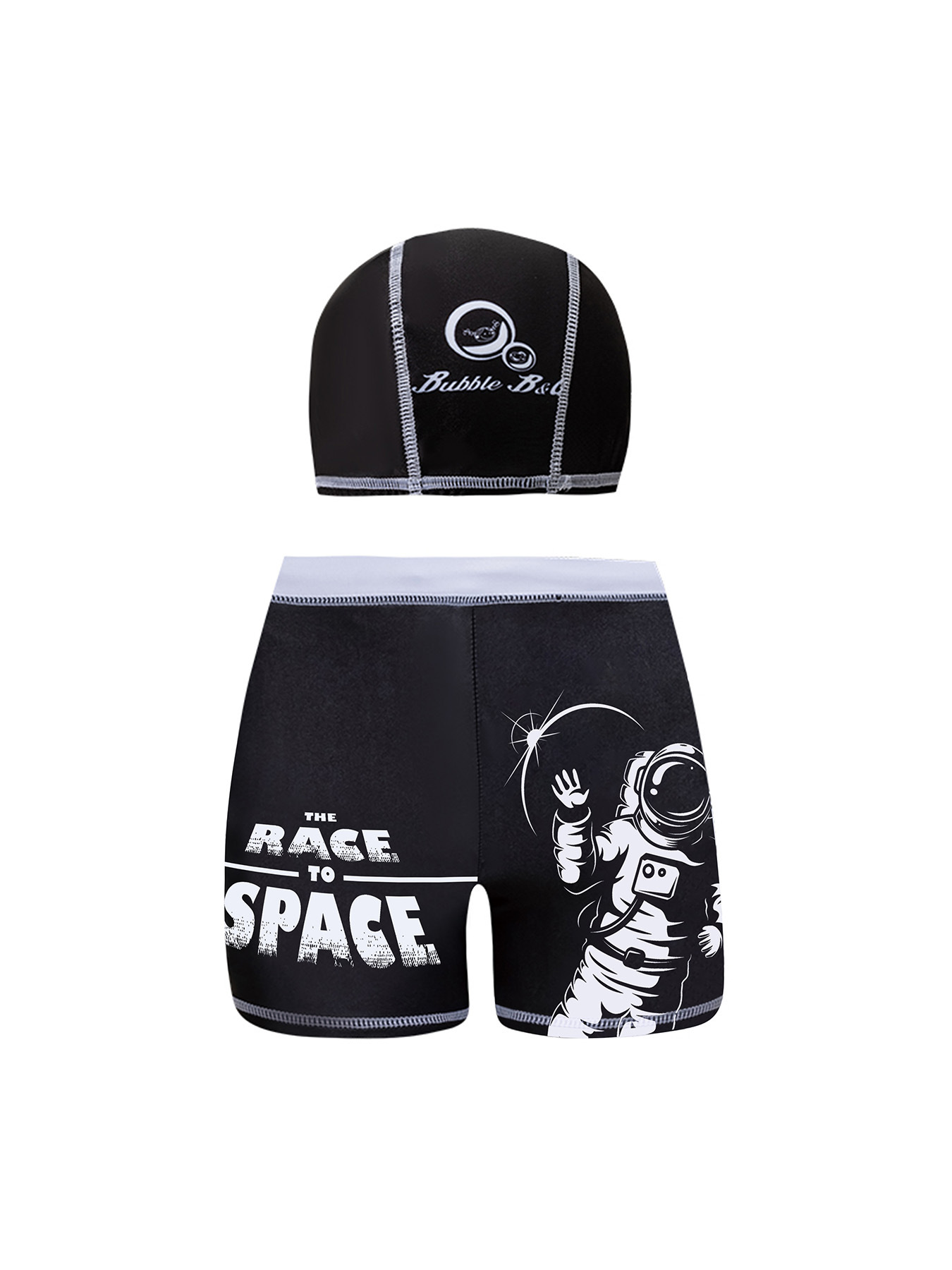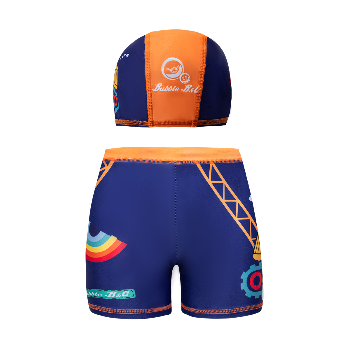 국경 간 어린이 수영 트렁크 소년 수영 트렁크 수영 모자 세트 속건성 만화 인쇄 중형 및 대형 어린이 레이스 업 복서 수영 트렁크