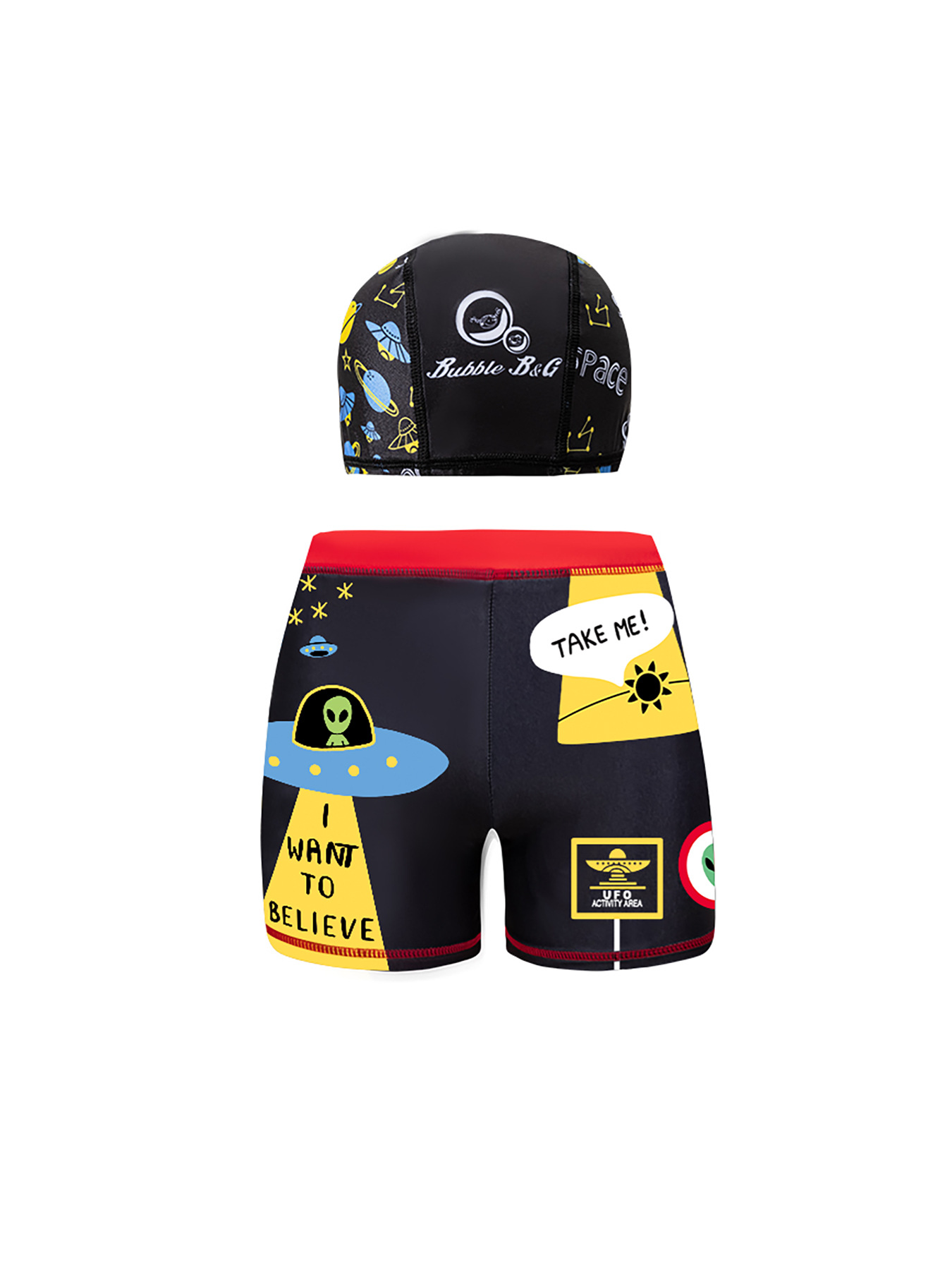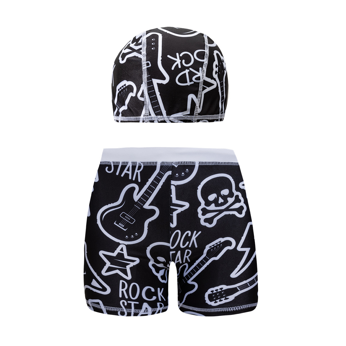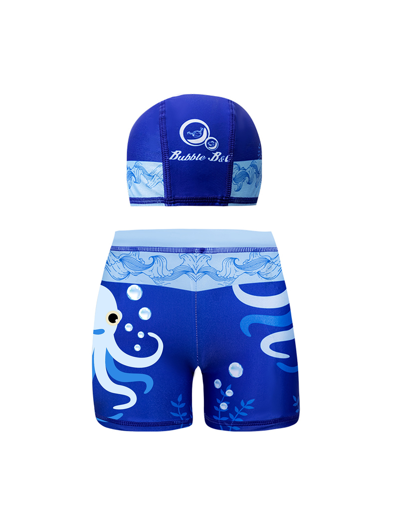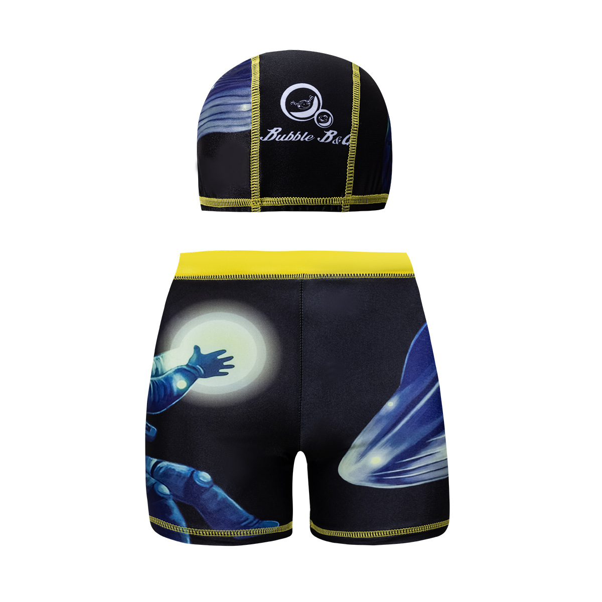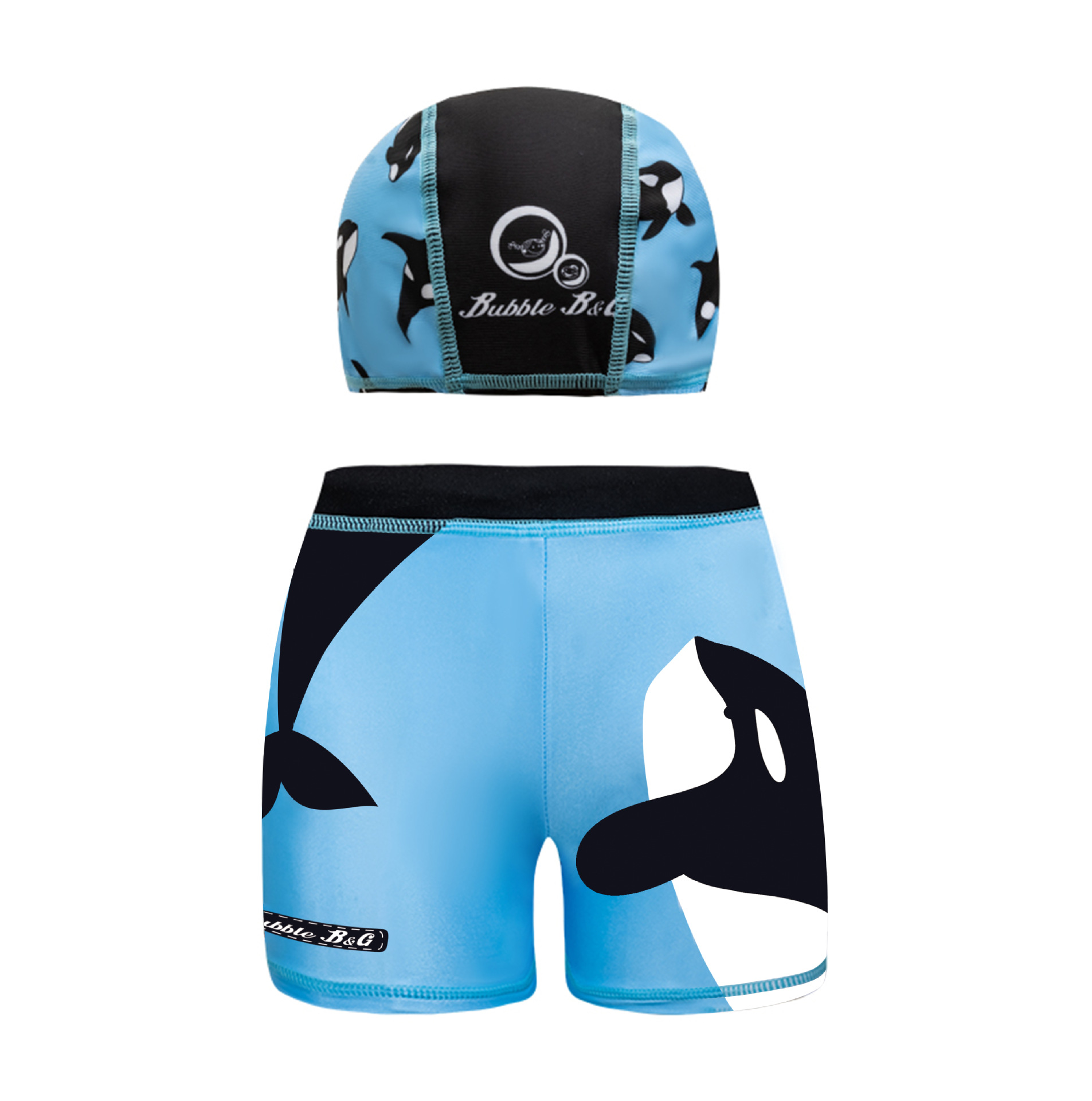 국경 간 어린이 수영 트렁크 소년 수영 트렁크 수영 모자 세트 속건성 만화 인쇄 중형 및 대형 어린이 레이스 업 복서 수영 트렁크
