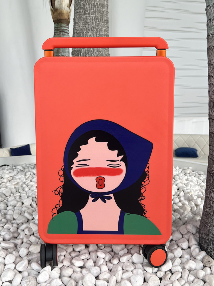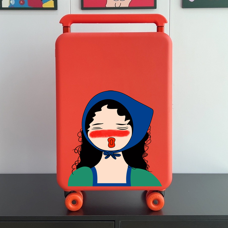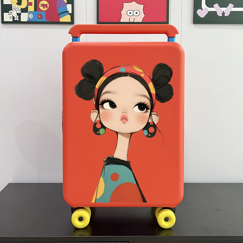 • 주황색 물방울 무늬 소녀 노란색 바퀴 파란색 막대(투명 보호 케이스 커버와 함께 제공)