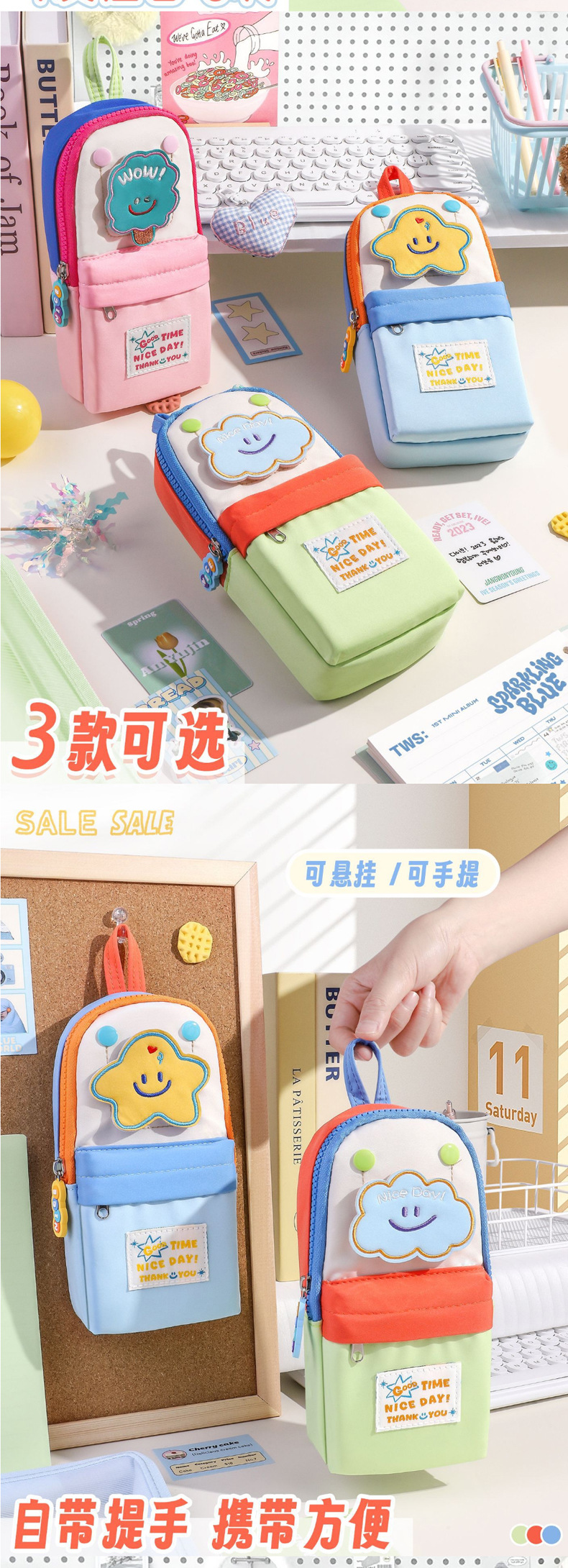 새로운 작은 책가방 모양의 연필 가방, 고급스러운 별 마카롱 컬러 연필 가방, 학생 수납 문구 상자스토어 가기