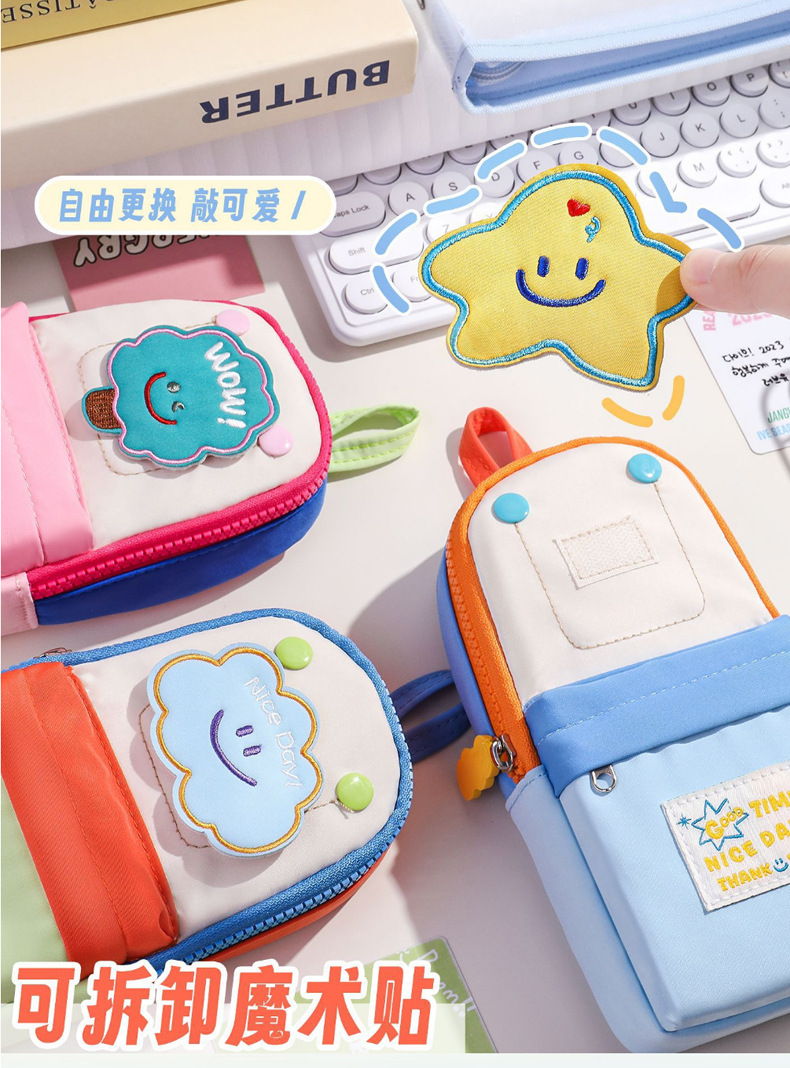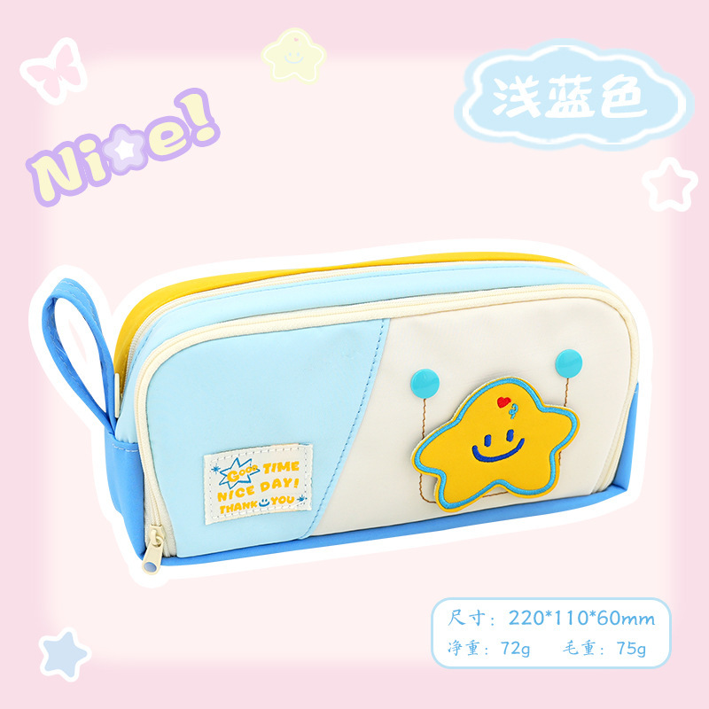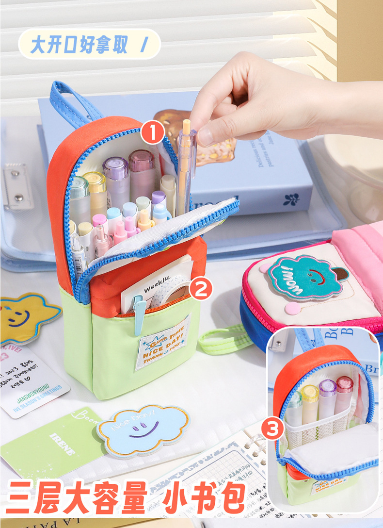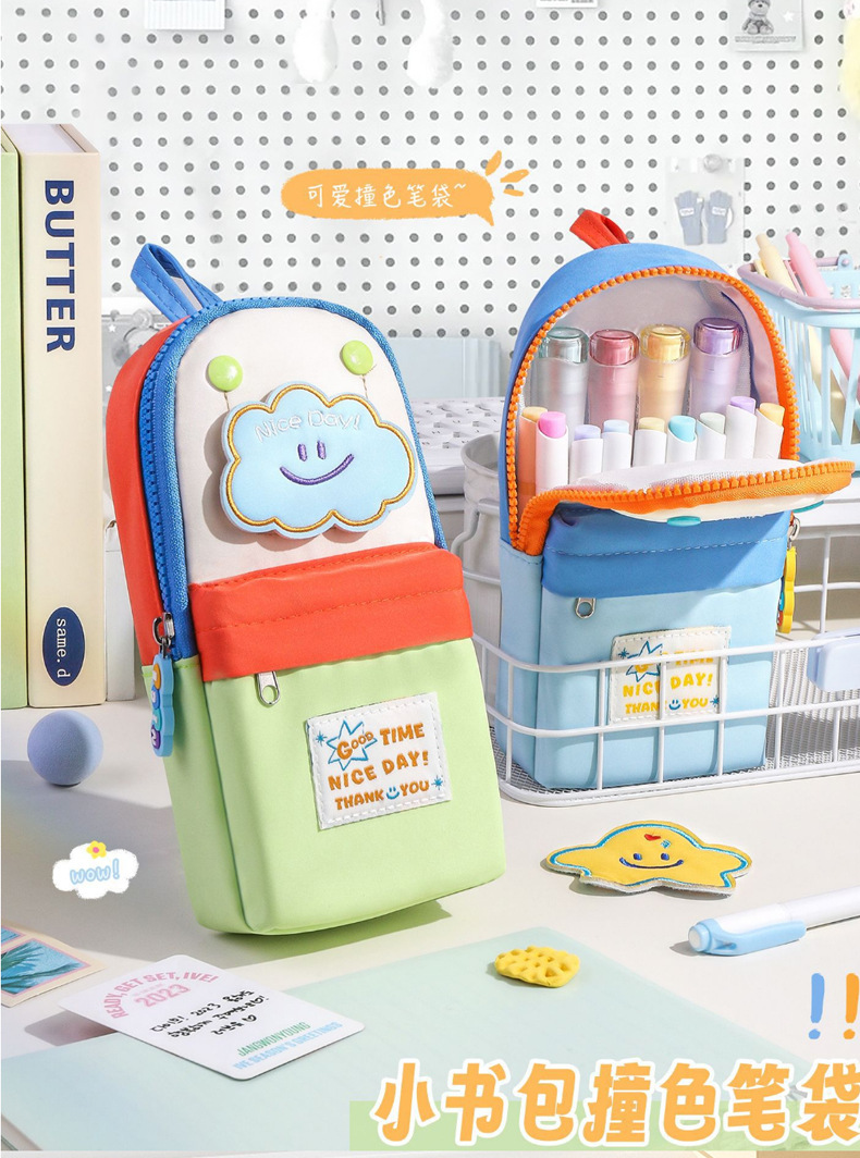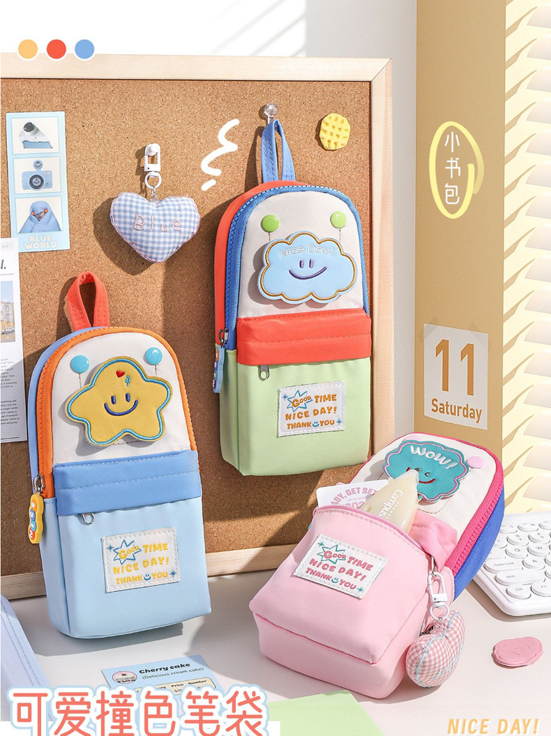 새로운 작은 책가방 모양의 연필 가방, 고급스러운 별 마카롱 컬러 연필 가방, 학생 수납 문구 상자