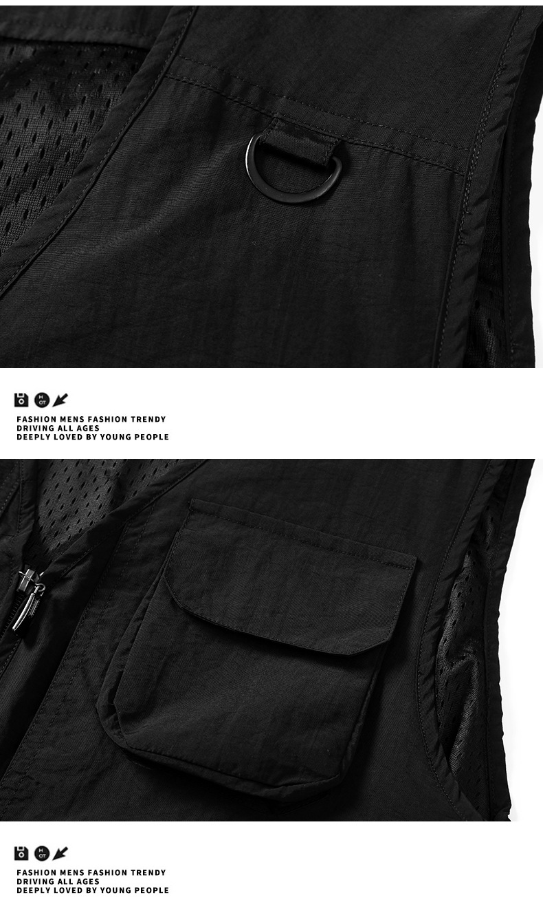 2025 새로운 봄, 여름 야외 레저 멀티 포켓 작업 조끼 남자 양복 조끼 사진 낚시 자선 자원 봉사 조끼