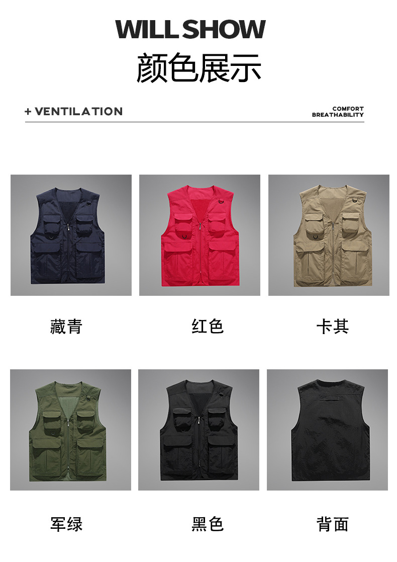 2025 새로운 봄, 여름 야외 레저 멀티 포켓 작업 조끼 남자 양복 조끼 사진 낚시 자선 자원 봉사 조끼스토어 가기