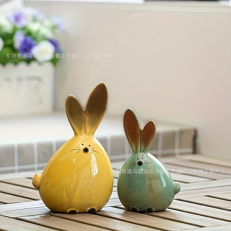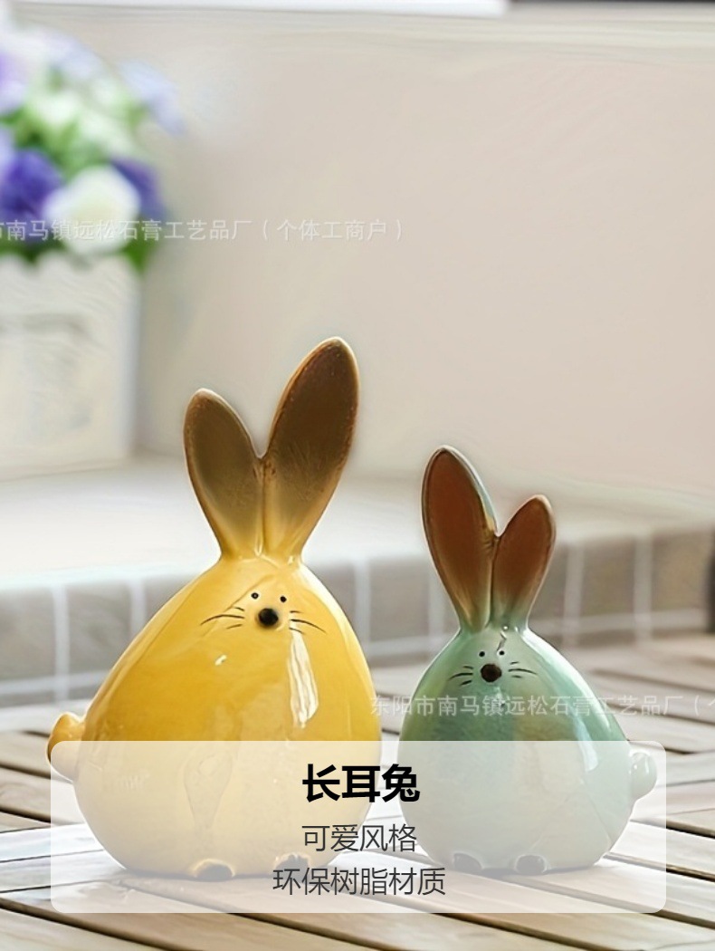 수지 소재와 귀여운 외관을 갖춘 크로스보더 크리에이티브 긴 귀 토끼 데스크탑 장식품은 사무실 데스크탑 장식에 적합합니다.스토어 가기