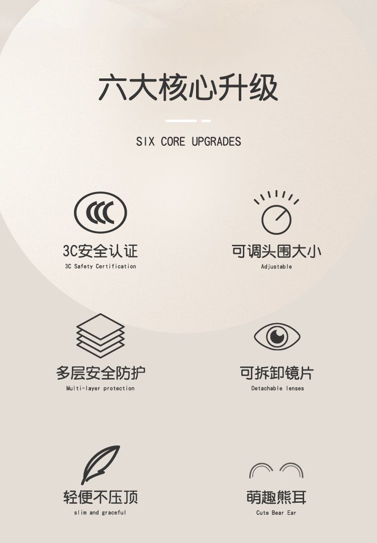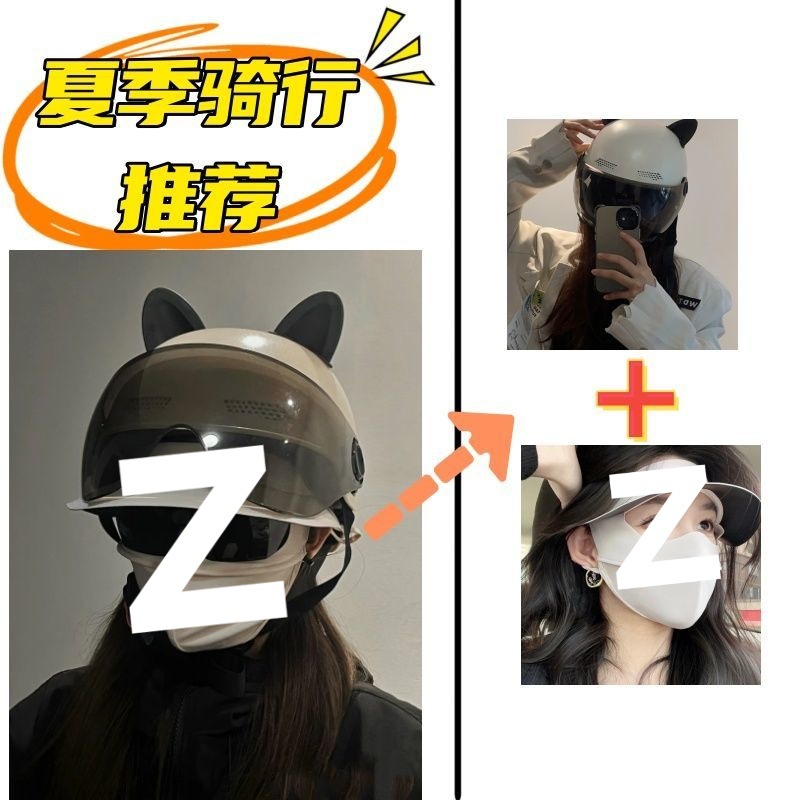 • 카키 쇼트티 고양이귀 헬멧 + 자외선 차단 마스크 [선글라스 미포함]