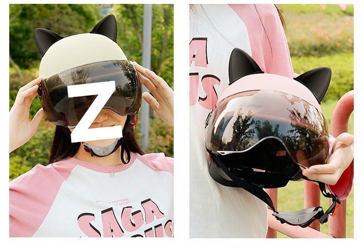 여성용 전기 자동차 헬멧, 남녀공용, 가볍고 여름용 고양이 귀가 달린 고급스러운 헬멧, 최소 배치 수량 1개스토어 가기