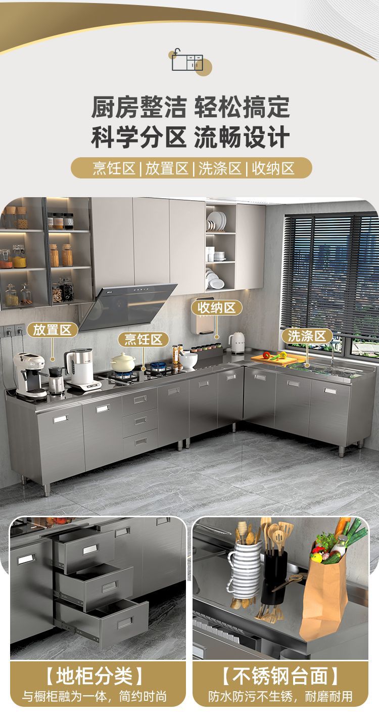 304 일체형 스테인레스 스틸 주방 캐비닛 농촌 가정용 사물함 찬장 스토브 캐비닛 싱크 캐비닛 일체형스토어 가기