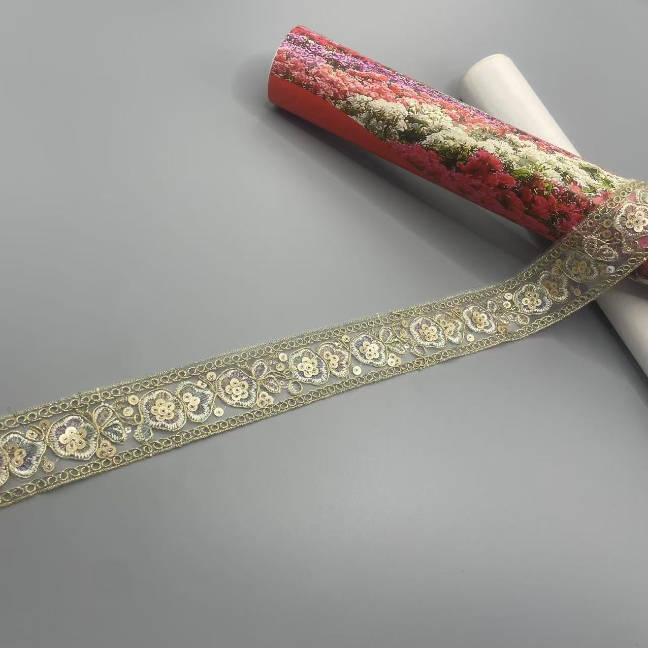 새로운 중국 스타일 민족 스타일 자수 레이스 액세서리 골동품 스타일 골드 스레드 스팽글 레이스 DIY Hanfu 액세서리