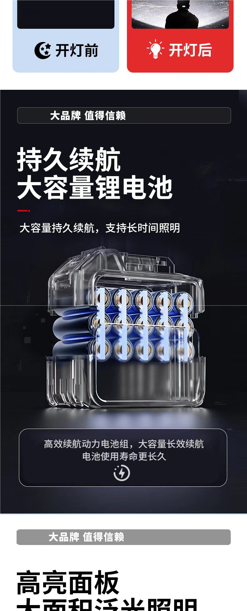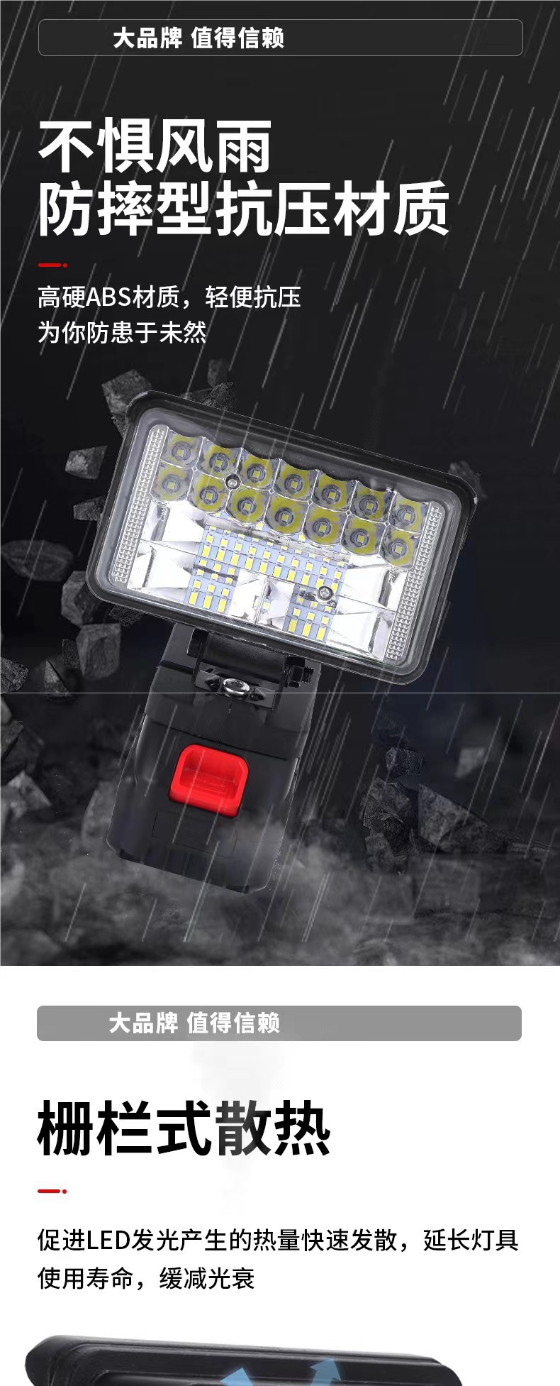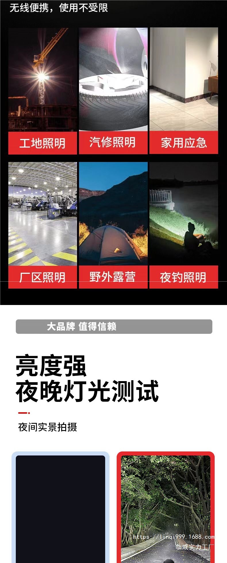 국경 간 충전식 조명 범용 리튬 배터리 작업 조명 야외 LED 자동 수리 낚시 비상 조명