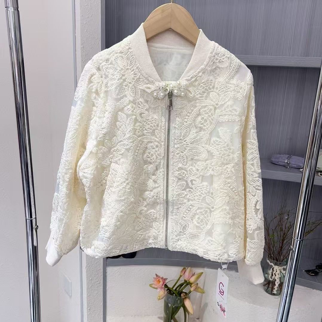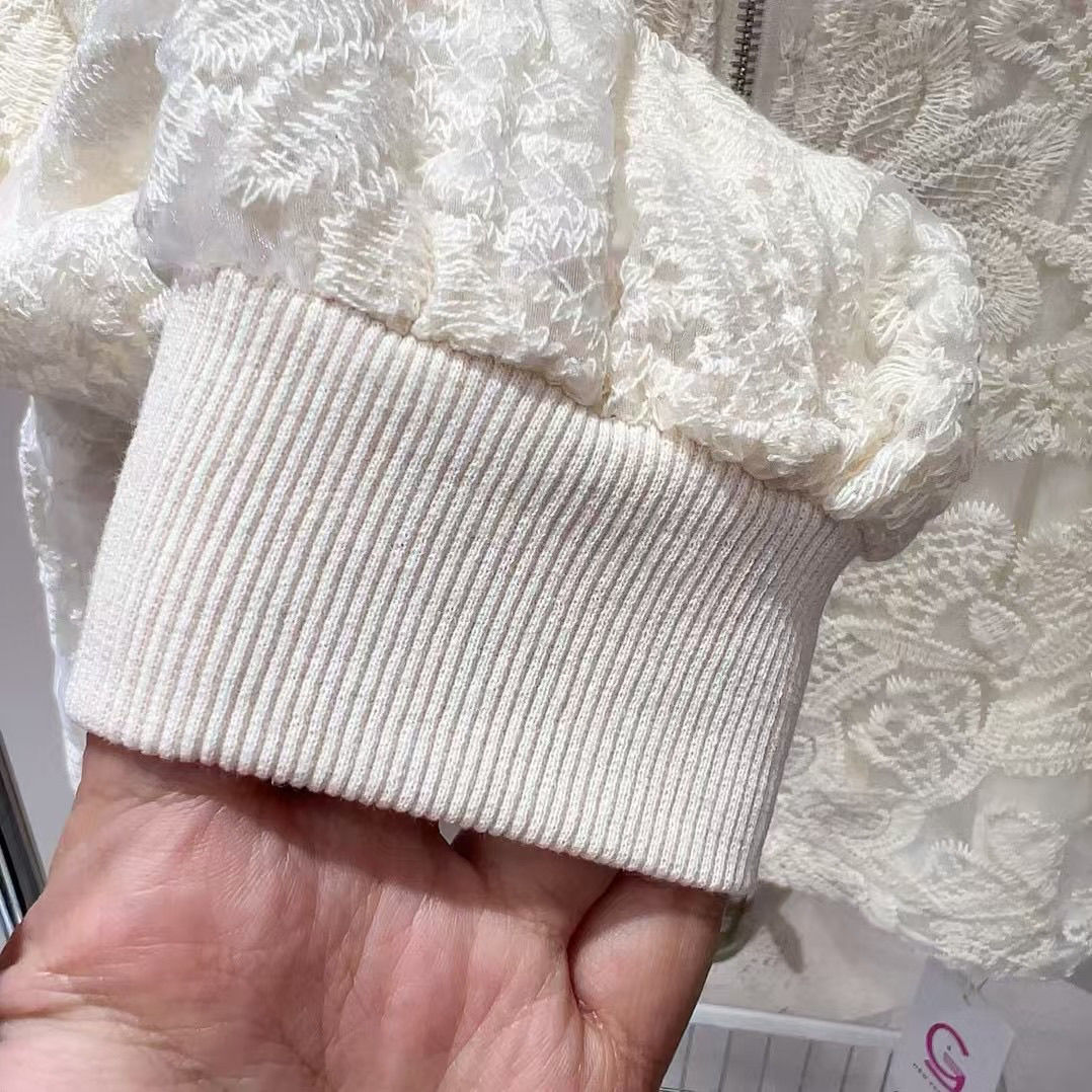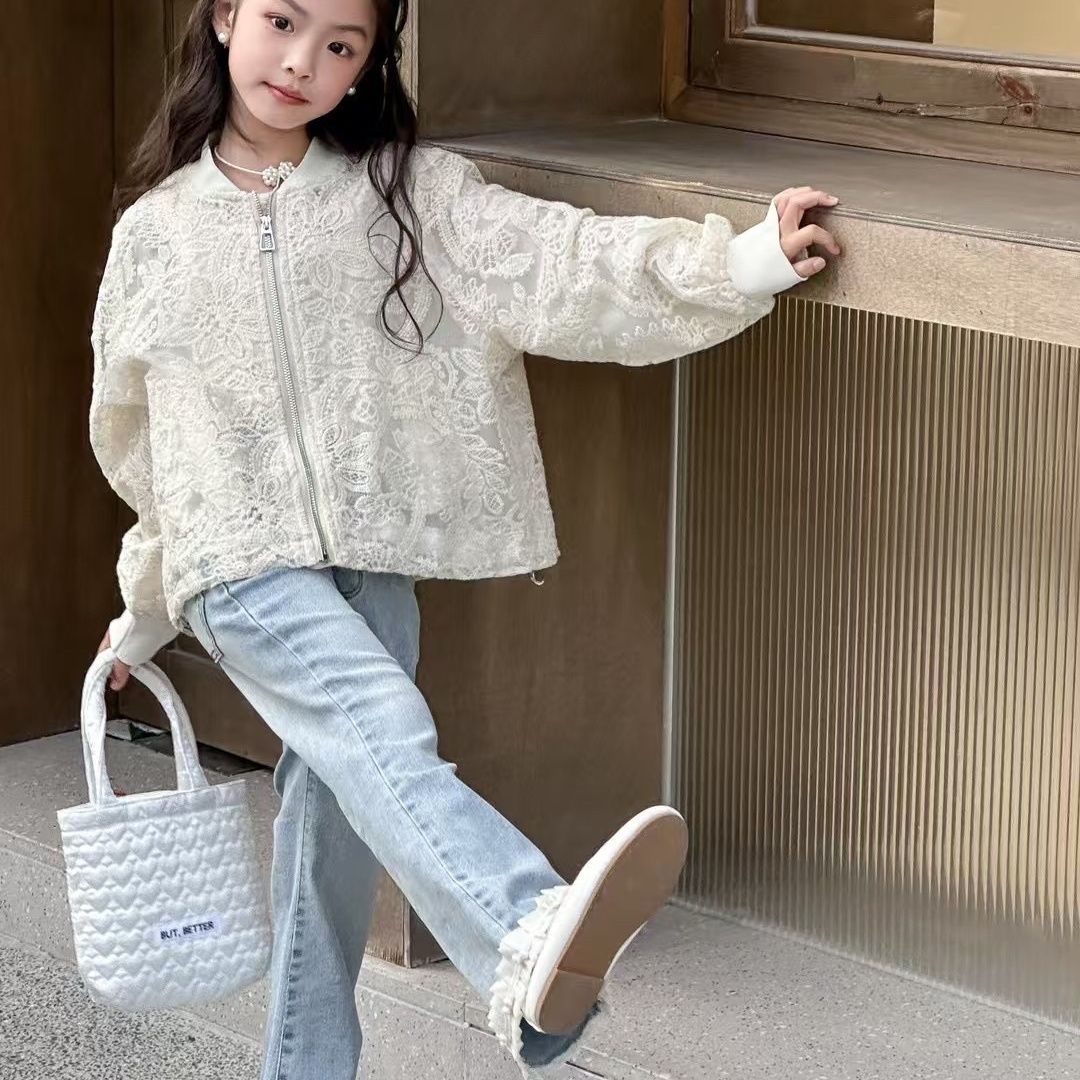 한국 스타일 소녀 레이스 얇은 재킷 2025 봄과 여름 태양 보호 의류 어린이 중공 긴팔 레이스 재킷 살구스토어 가기