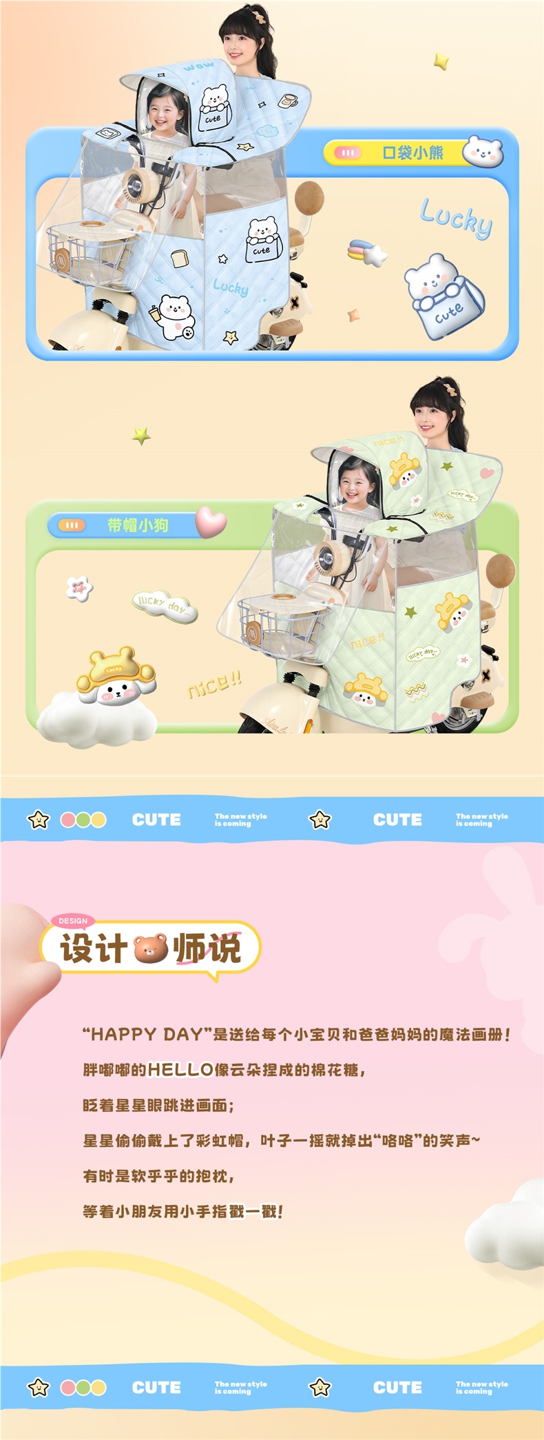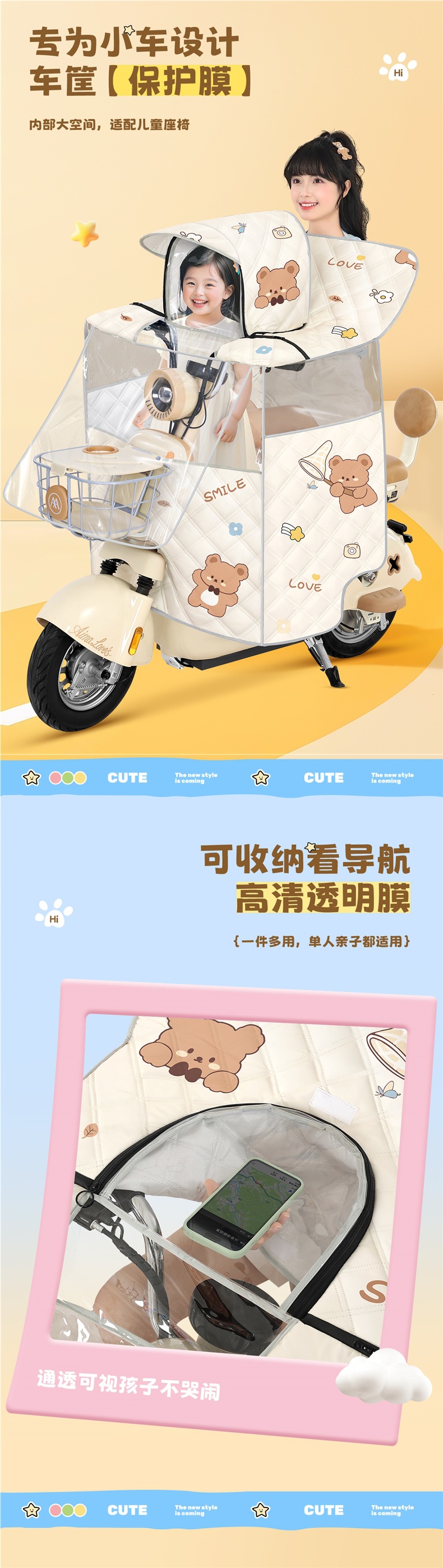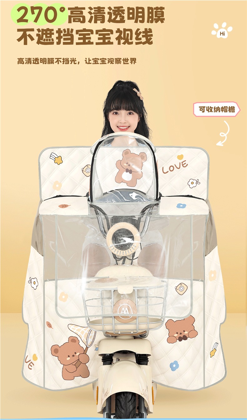 전기차 앞유리, 부모-자식 여름 일체형 자외선 차단제, 소형 배터리 자동차, 바람과 비 차단, 사계절 모두 사용 가능