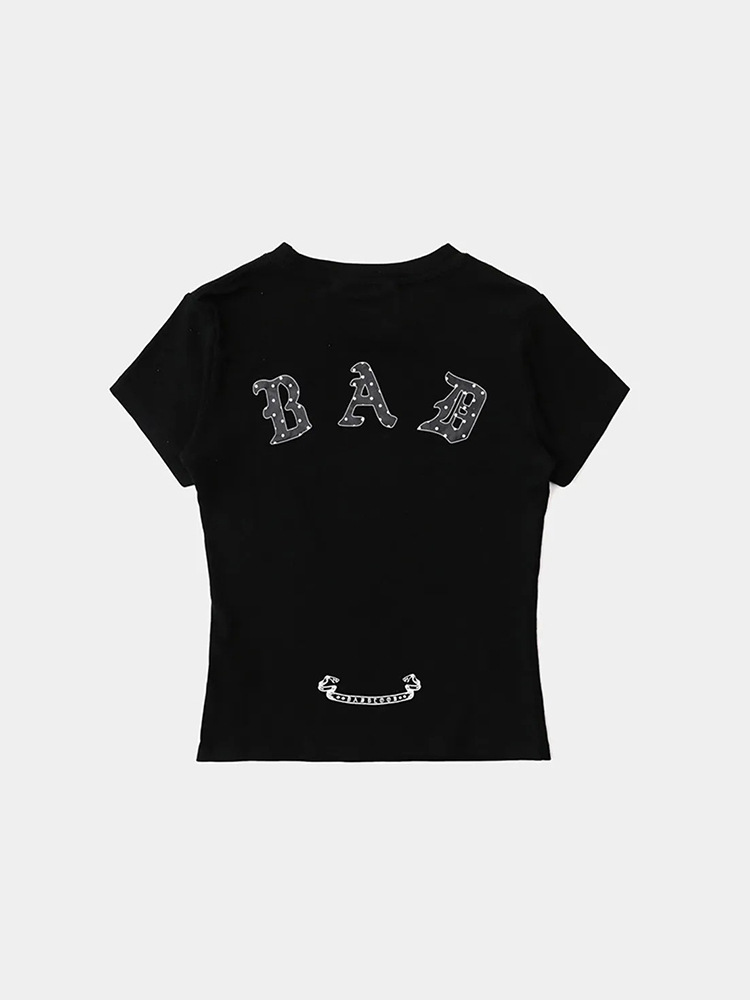 한국어 badblood bcac 시리즈 핫 소녀 반팔 티셔츠 여성 틈새 디자인 스포츠 아메리칸 라운드 넥 탑스토어 가기