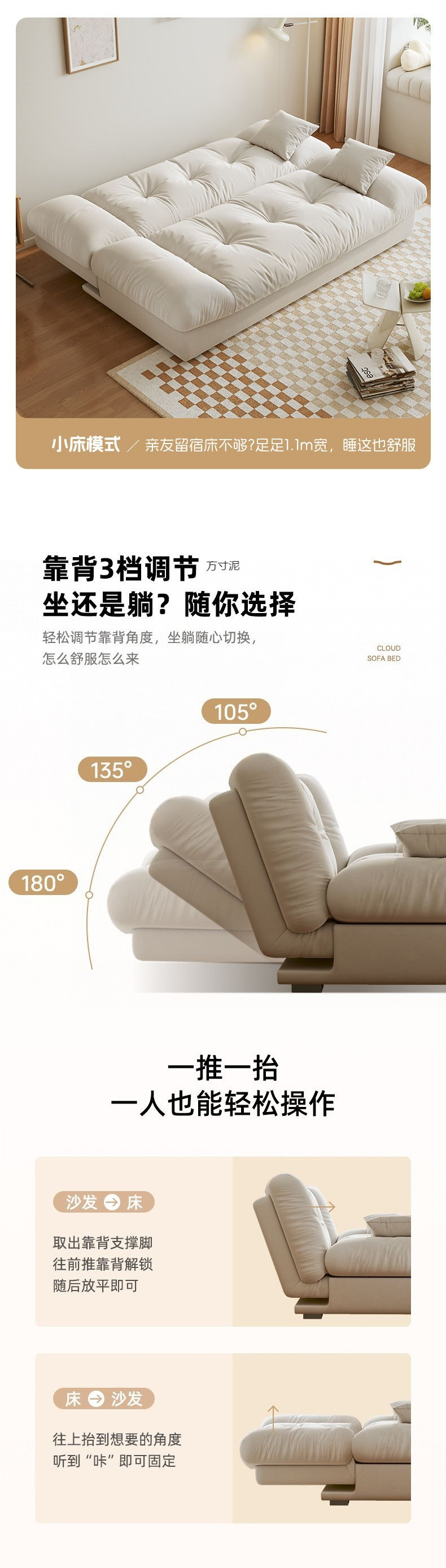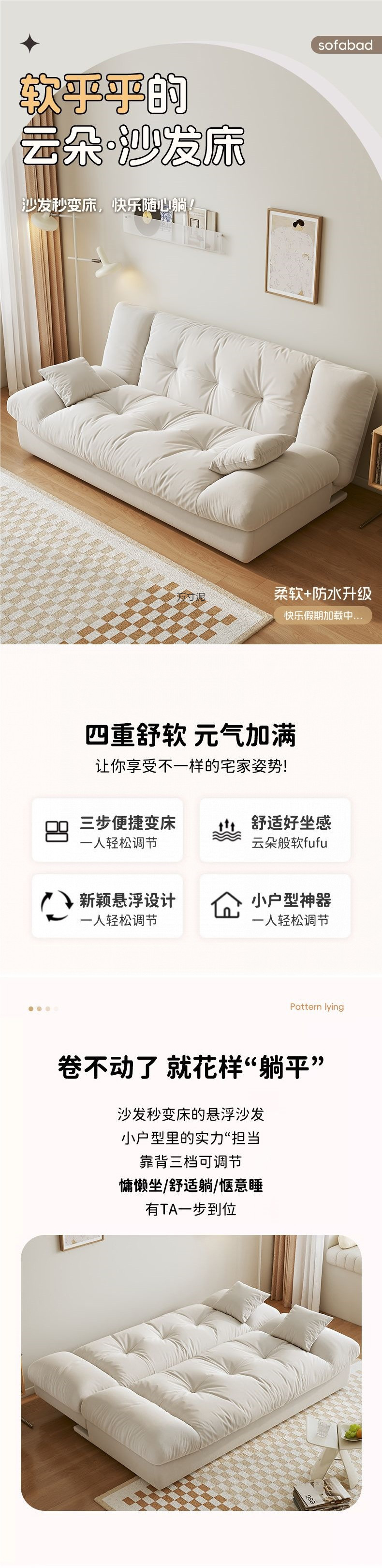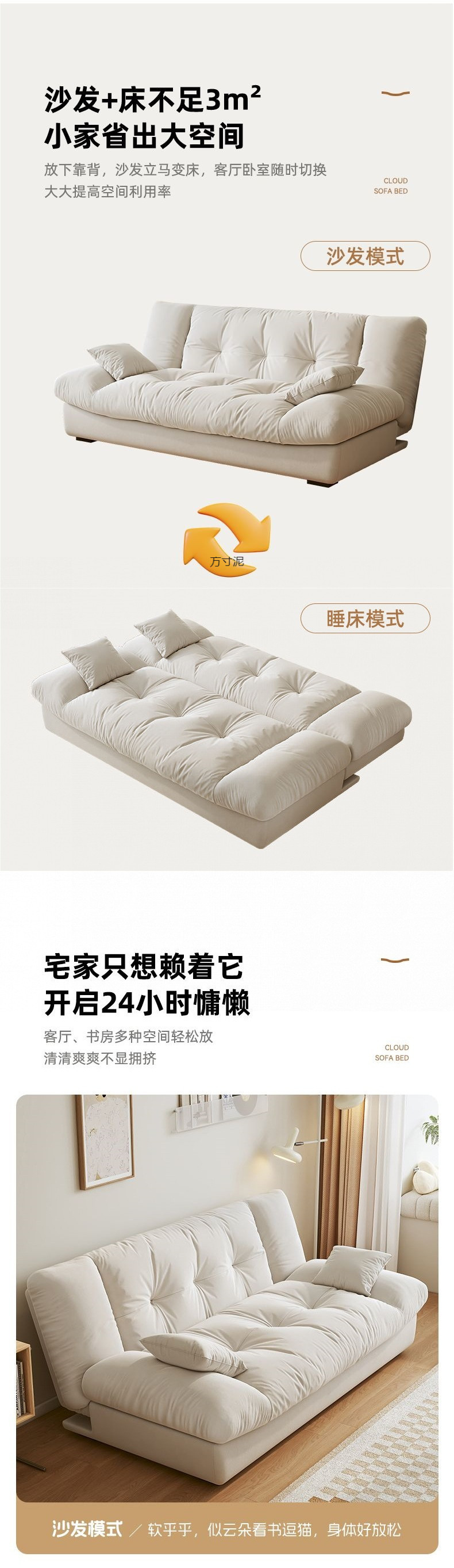 이중 목적 접이식 소파 다기능 소파 침대 거실 작은 아파트 현대 간단한 크림 스타일 인터넷 연예인 모델 도매스토어 가기