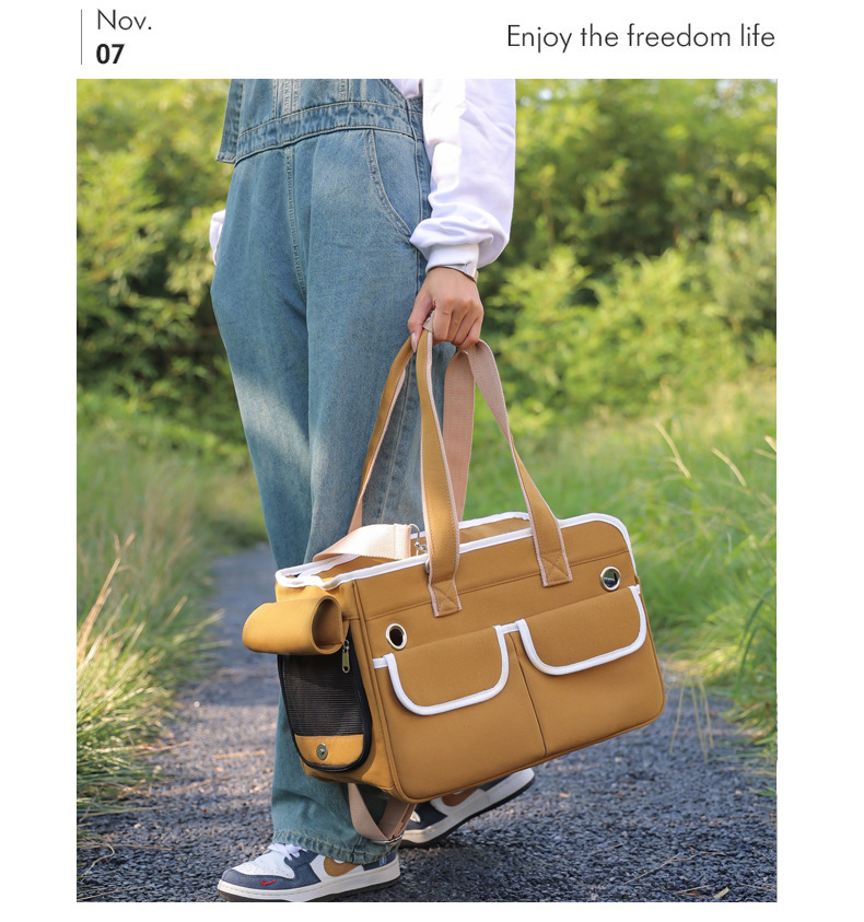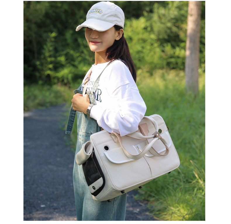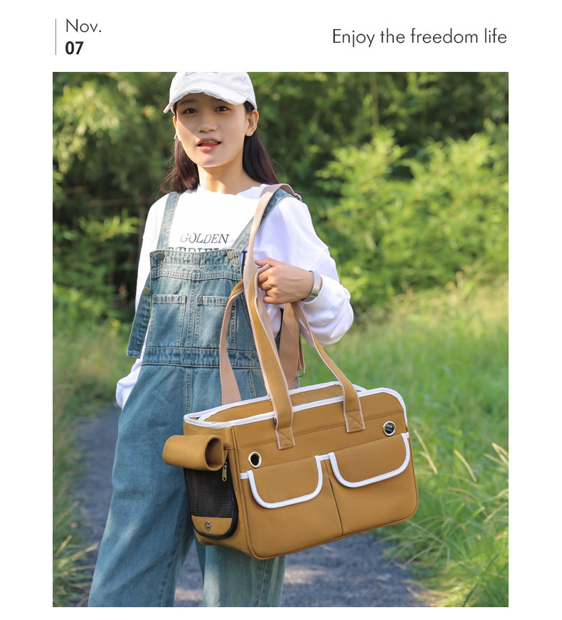 국경 간 크로스 바디 고양이 가방, 휴대용 애완 동물 가방, 야외 통기성 캔버스 핸드백, 야외용 접이식 개 가방