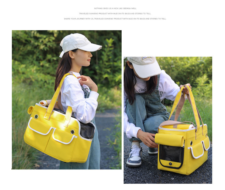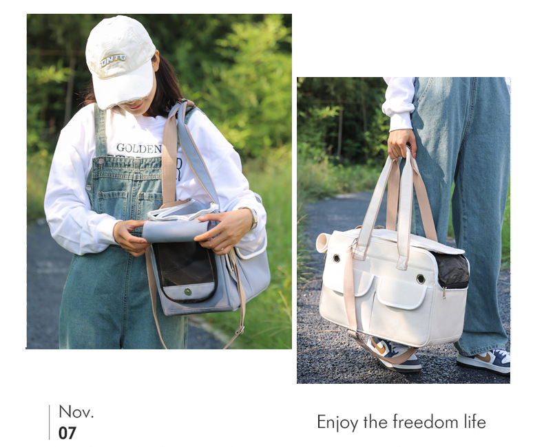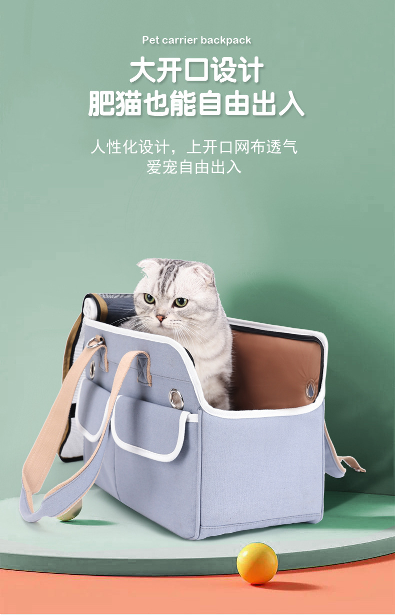국경 간 크로스 바디 고양이 가방, 휴대용 애완 동물 가방, 야외 통기성 캔버스 핸드백, 야외용 접이식 개 가방스토어 가기