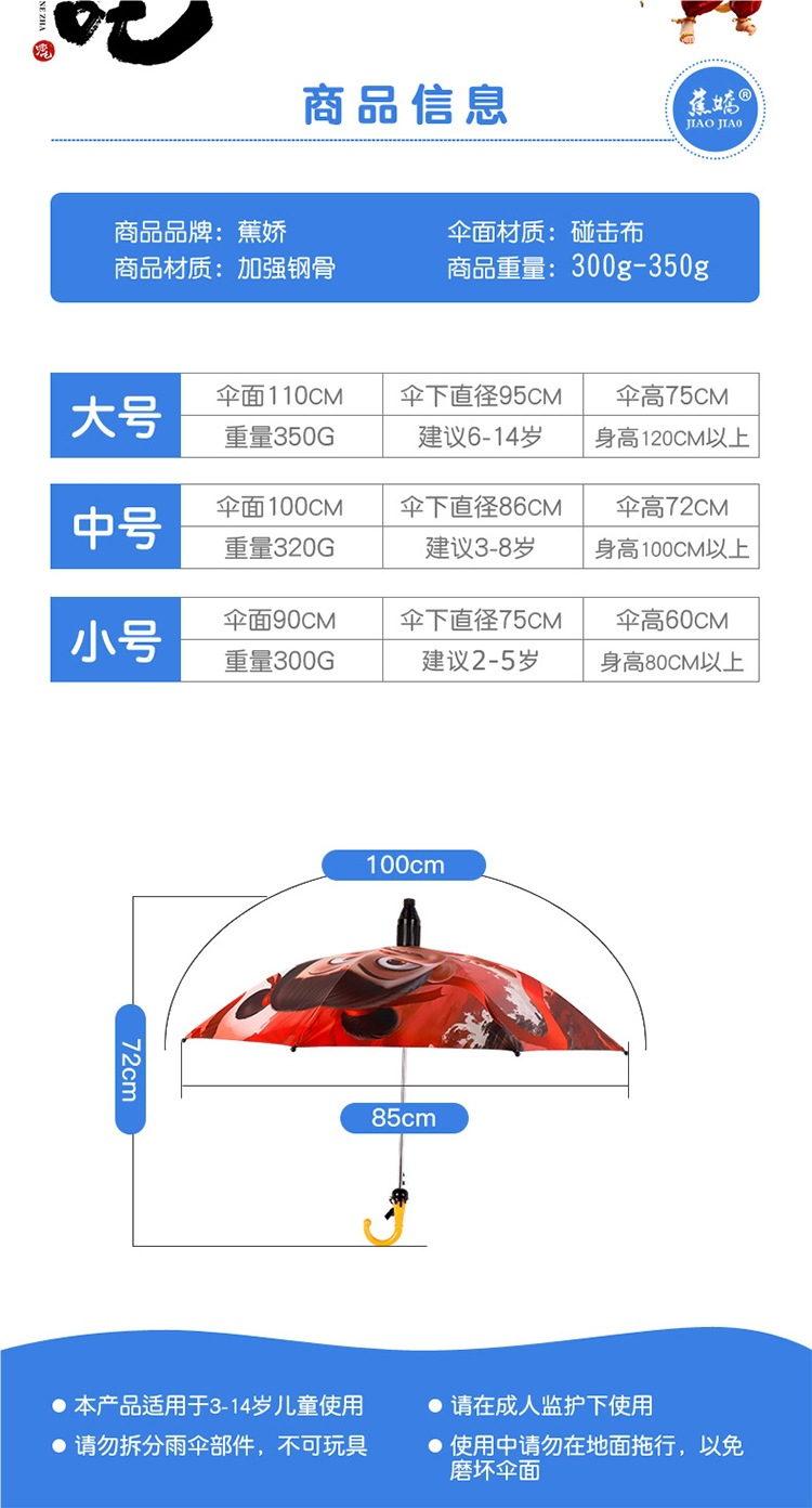 Na Zha Ao Bing 어린이 우산 만화 우산 초등학생 학교 비닐 태양 보호 접는 긴 손잡이 우산 태양 우산스토어 가기